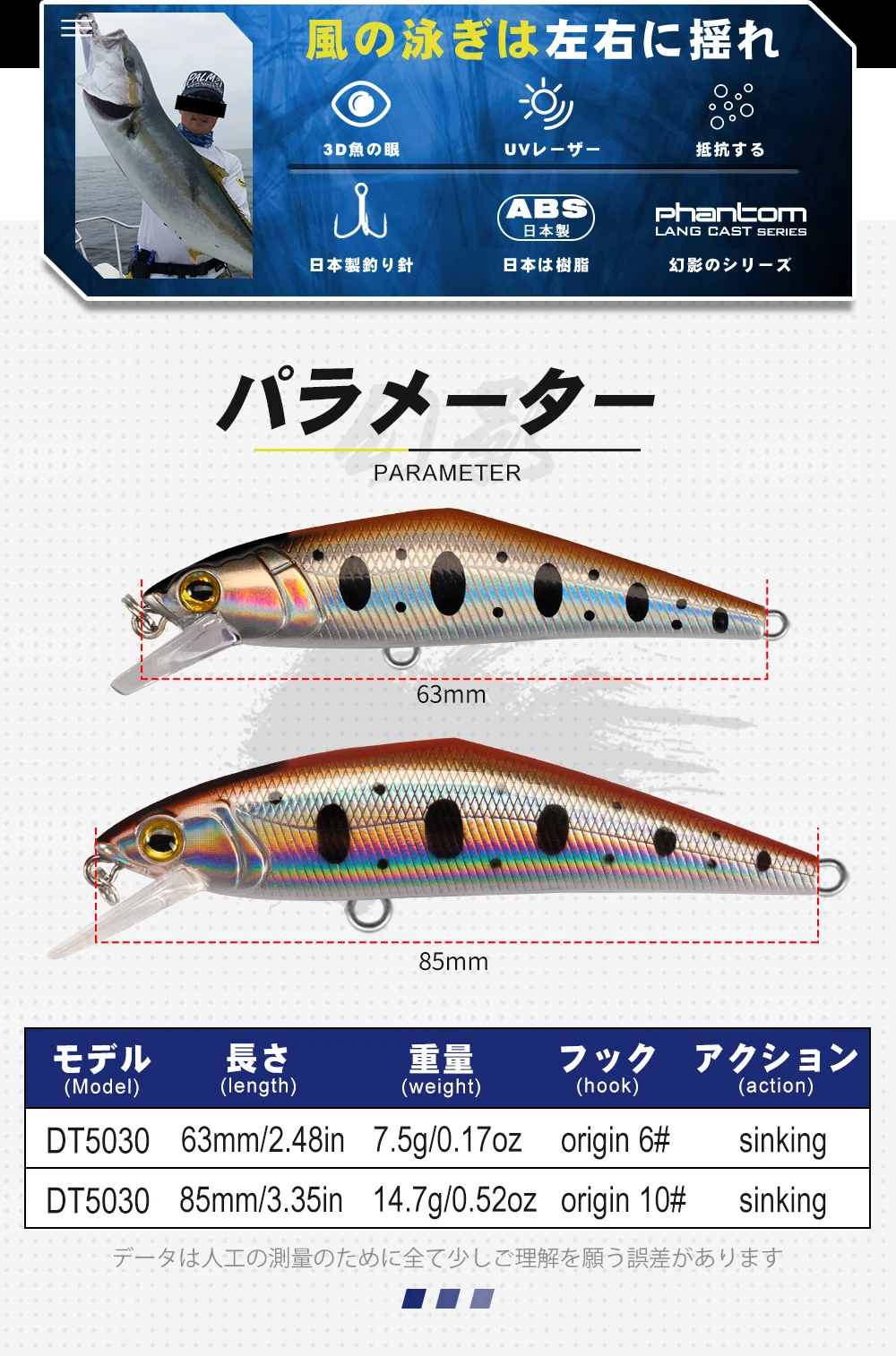 Señuelos de pesca para trucha D1, cebos para pececillos afundados, Wobblers duros artificiales de 63mm y 85mm para truta en perca, aparejos de Pesca DT5030