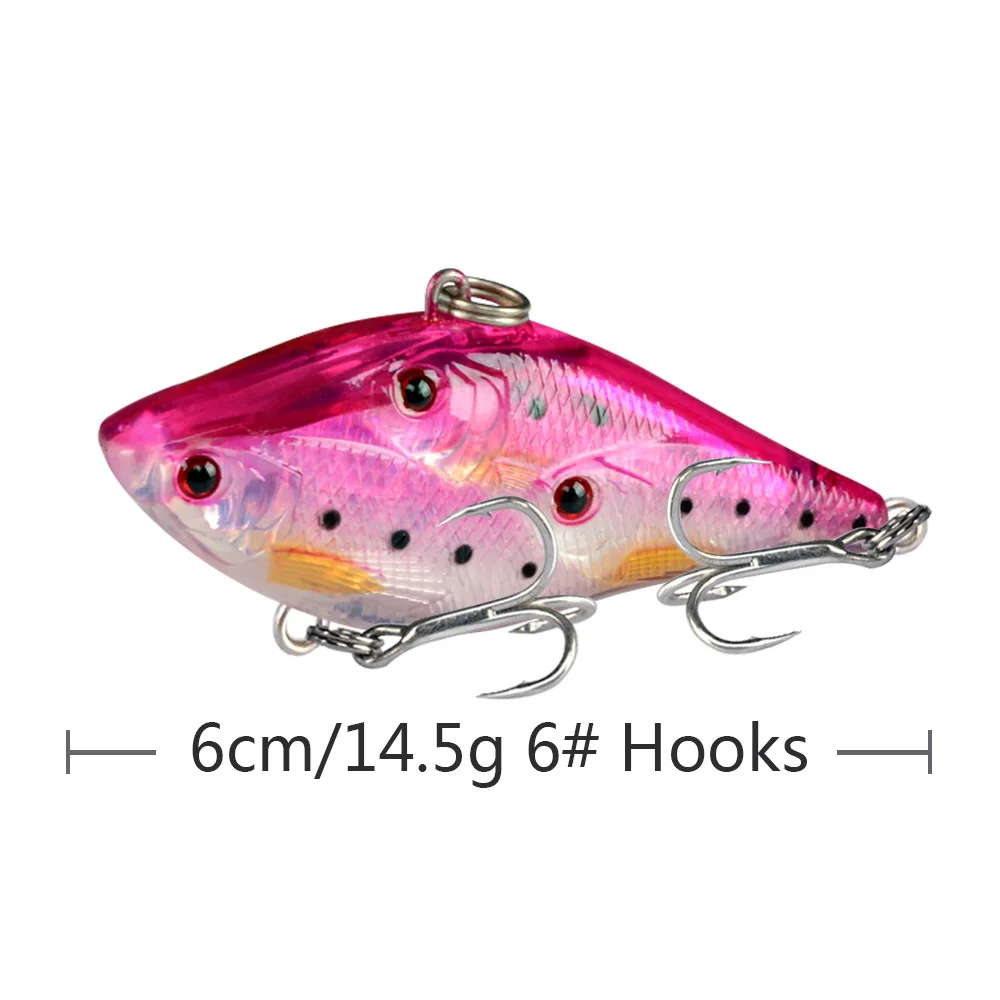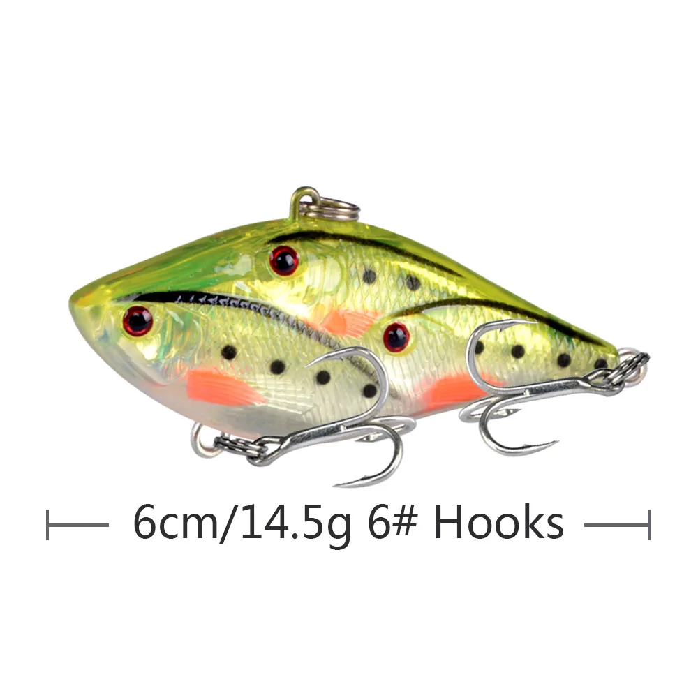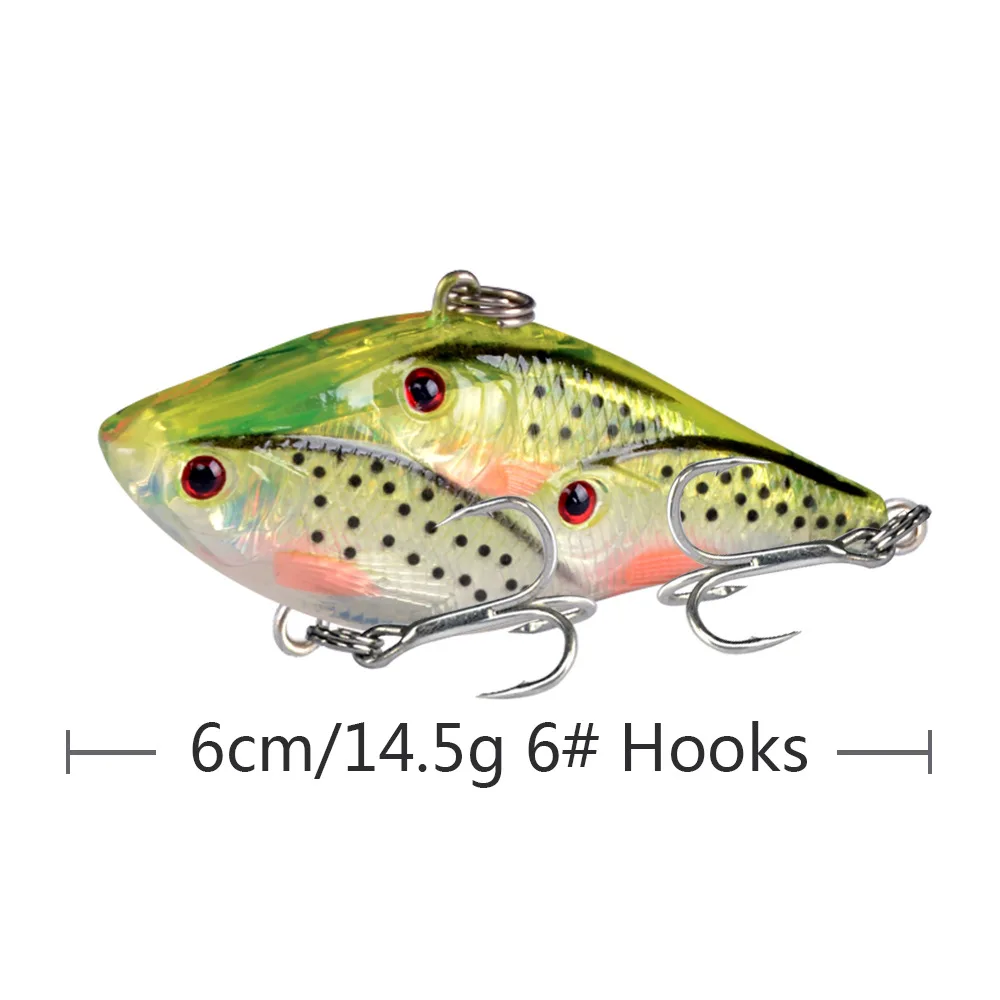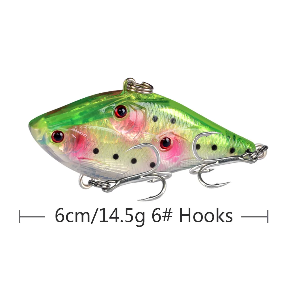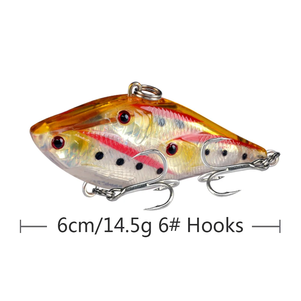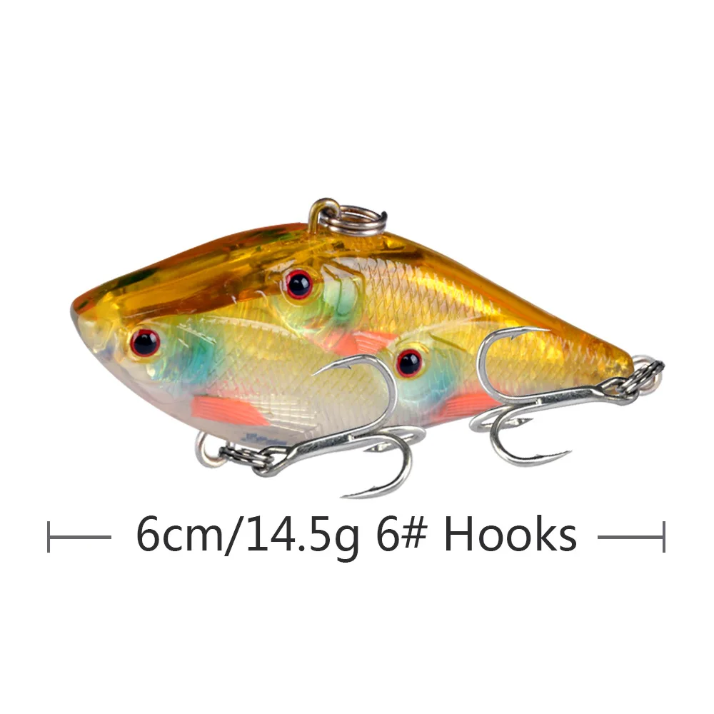 Señuelos de Pesca VIB, Wobblers de vibración que se hunden, cebo duro de plástico Artificial, pesca de lubina, anzuelo triple, invierno, 6cm, 14,5g, 1 unidad