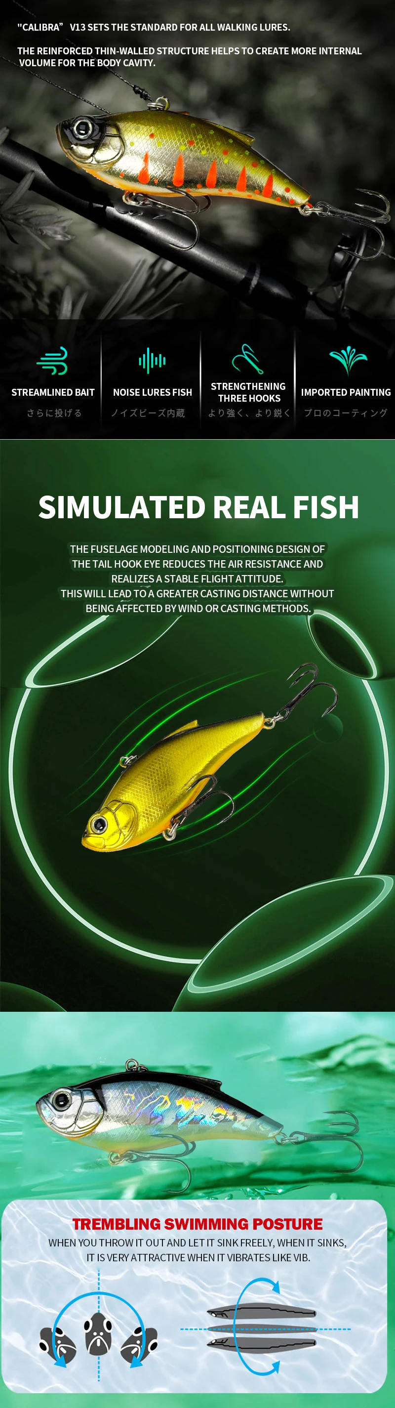 Señuelos de Pesca con vibración que se hunden, cebo duro Artificial, 75mm, 14,5g