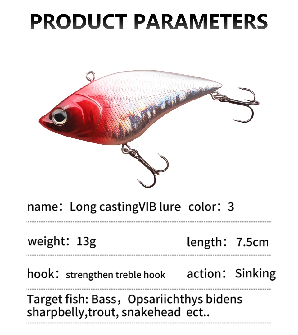 Señuelos de Pesca vibratorios VIB, cebo duro Artificial para lubina, Lucio, perca, Jerkbait, 13g, 75mm