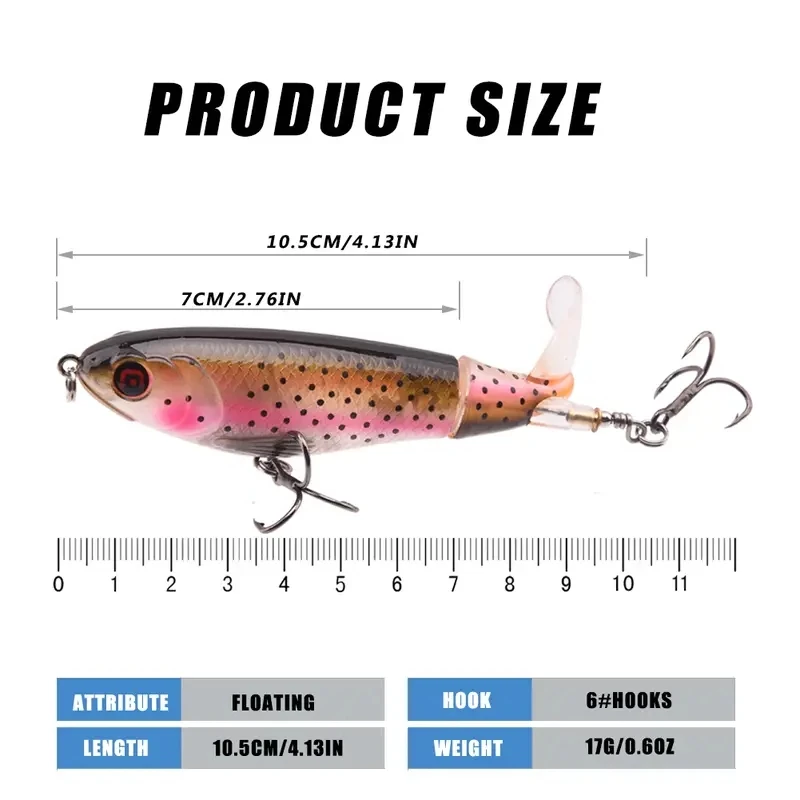El Whopper Popper es un señuelo diseñado para mariscos, lucios, aspius, percas amarillas y lubinas negras.