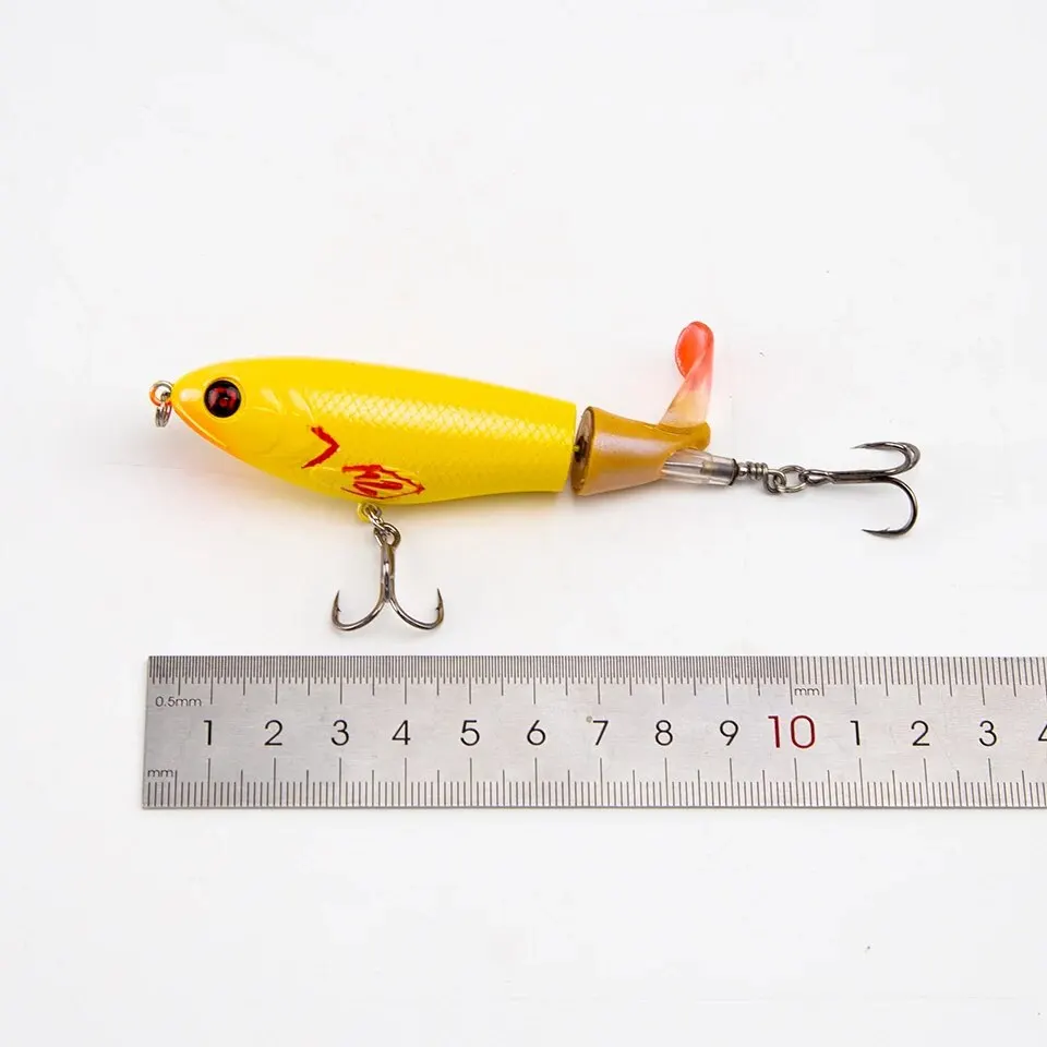• Cola giratoria:La cola giratoria del señuelo de pesca Whopper Plopper crea un movimiento realista que atrae a los peces y aumenta la probabilidad de una captura exitosa.