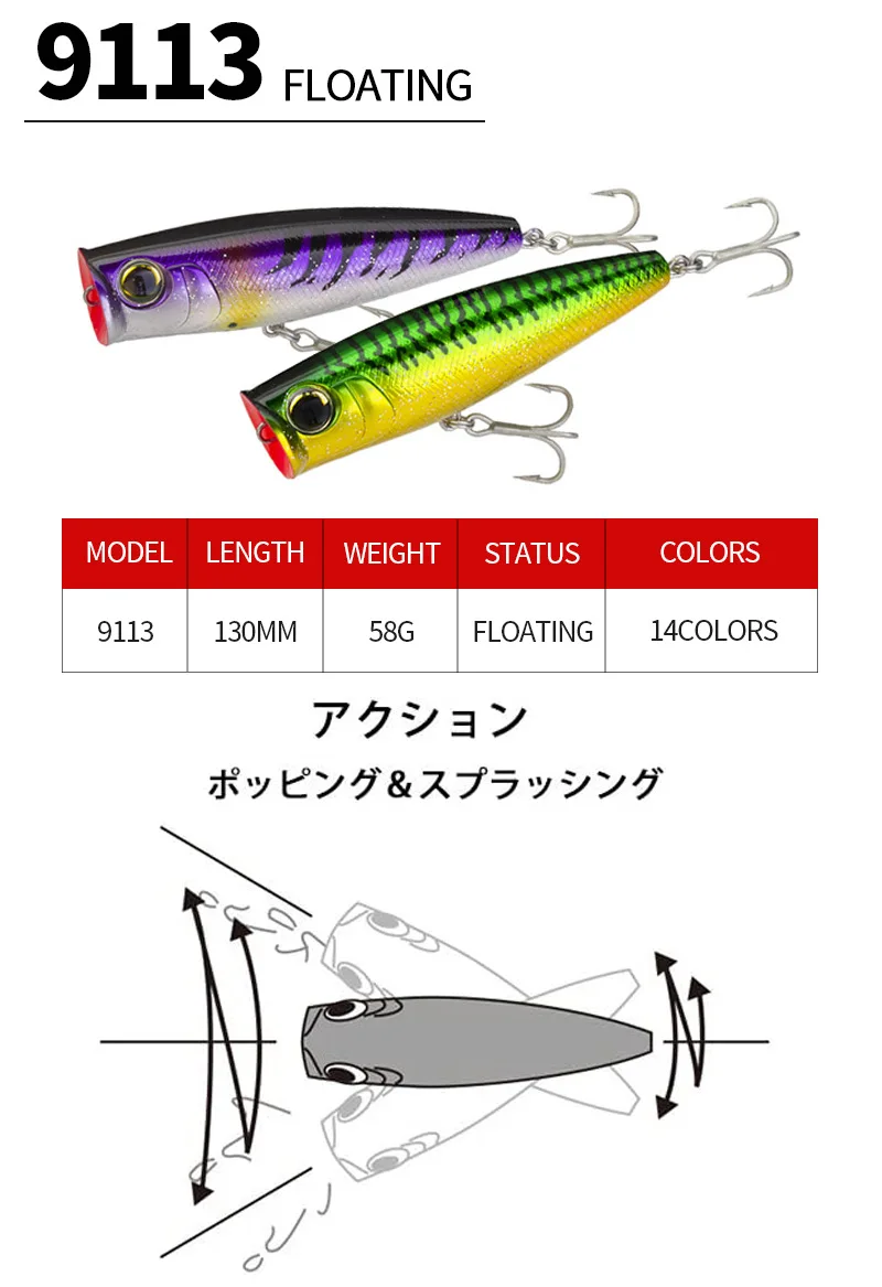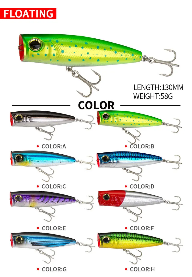 Señuelos de pesca Wobbler flotantes Big Popper, cebo duro de plástico Artificial, aparejos de pesca, 150mm, 58g, 1 ud.