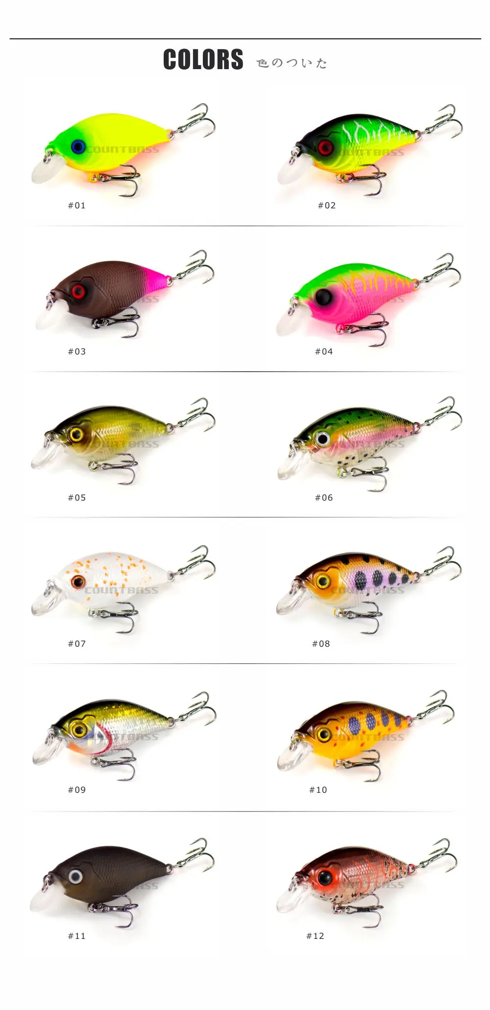 Señuelos de pesca Wobbler flotantes Countbass, señuelos de plástico duro con manivela para salmón, trucha, lubina, Lucio, 46mm, 6,8g