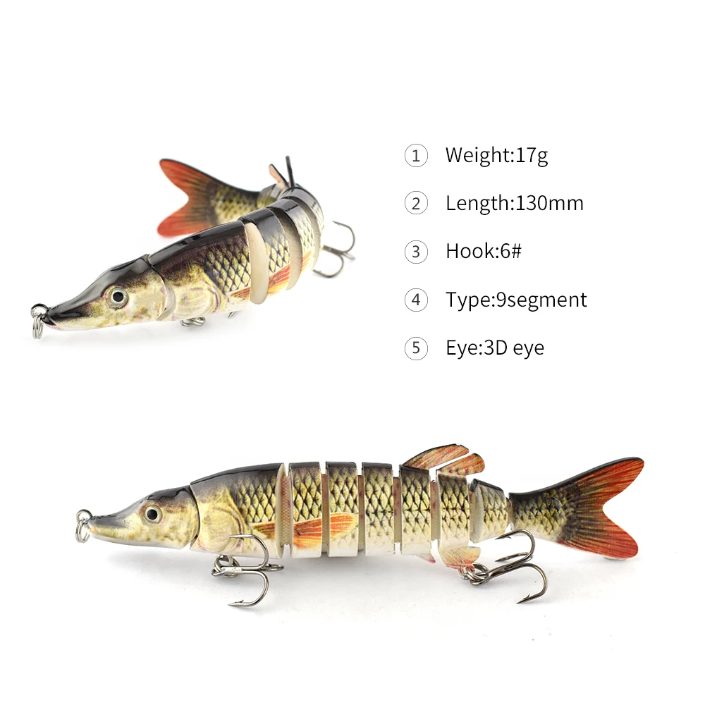 Señuelos de Pesca Wobblers de 13cm y 17g, multiarticulado Swimbait, 9 segmentos, Crankbait, cebo Artificial duro, accesorios de pesca de Lucio