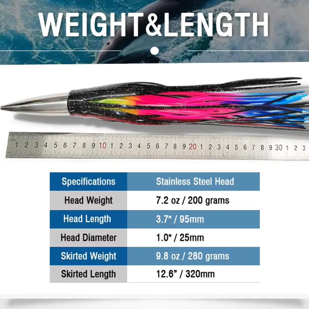 Señuelos de pez espada de 25cm y 232g, cebo de Metal para pesca en aguas saladas, gran juego, pesca en barco de aguas profundas en alta mar, atún, Wahoo Mahi, Marlin