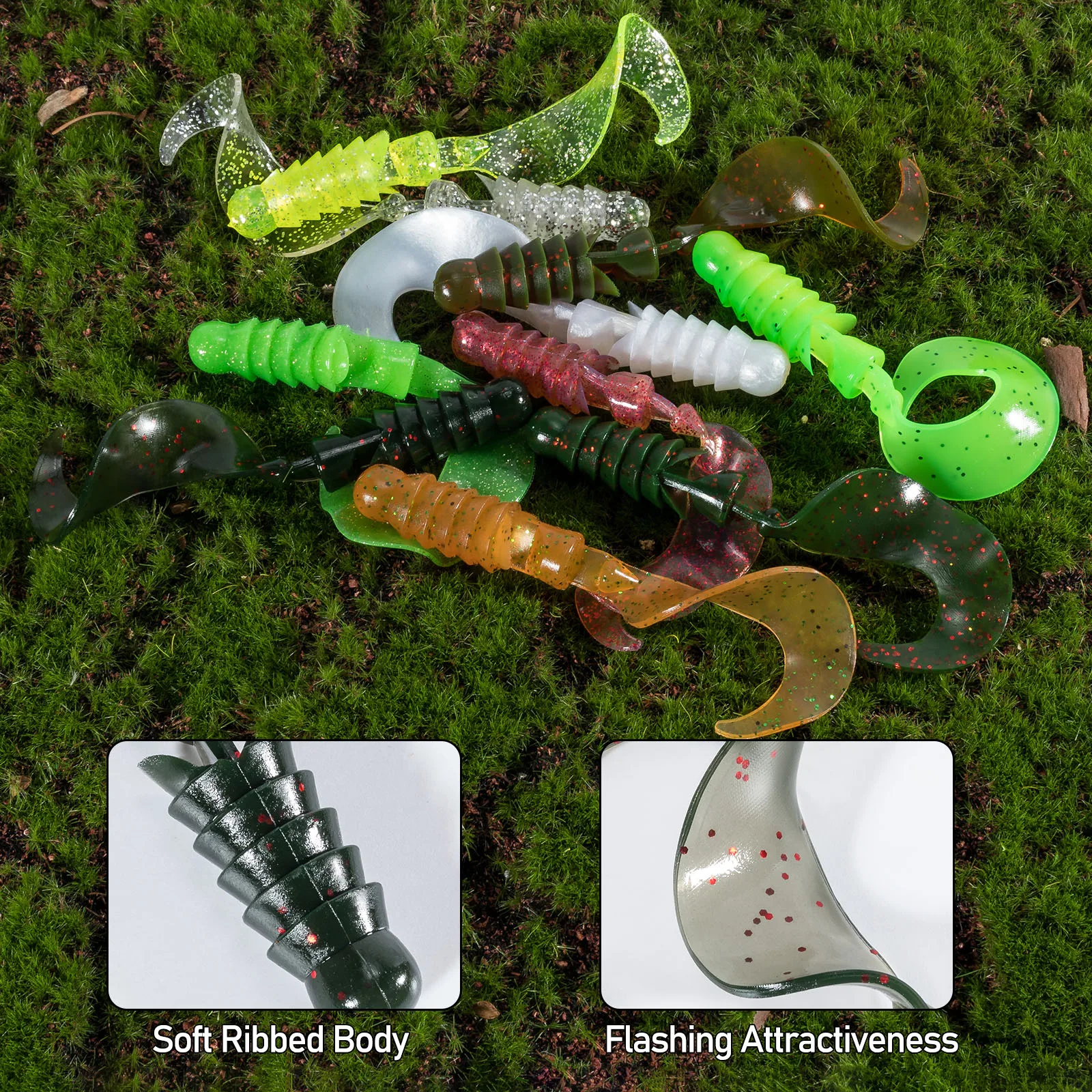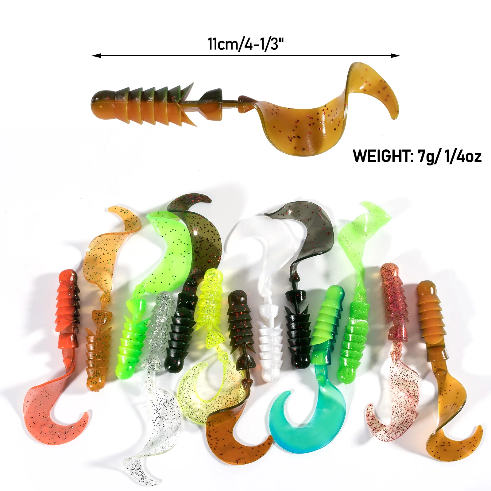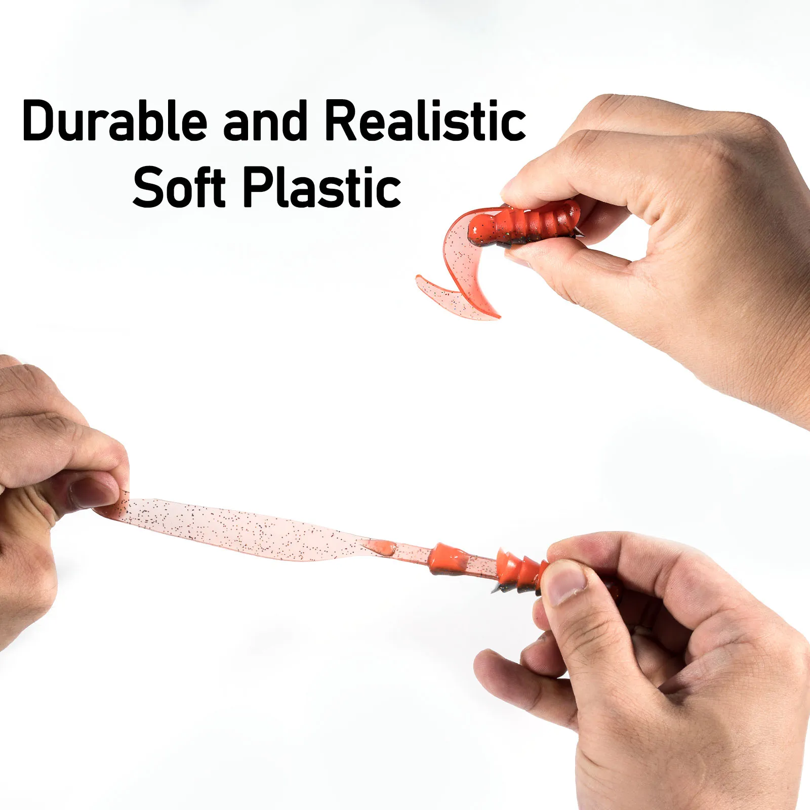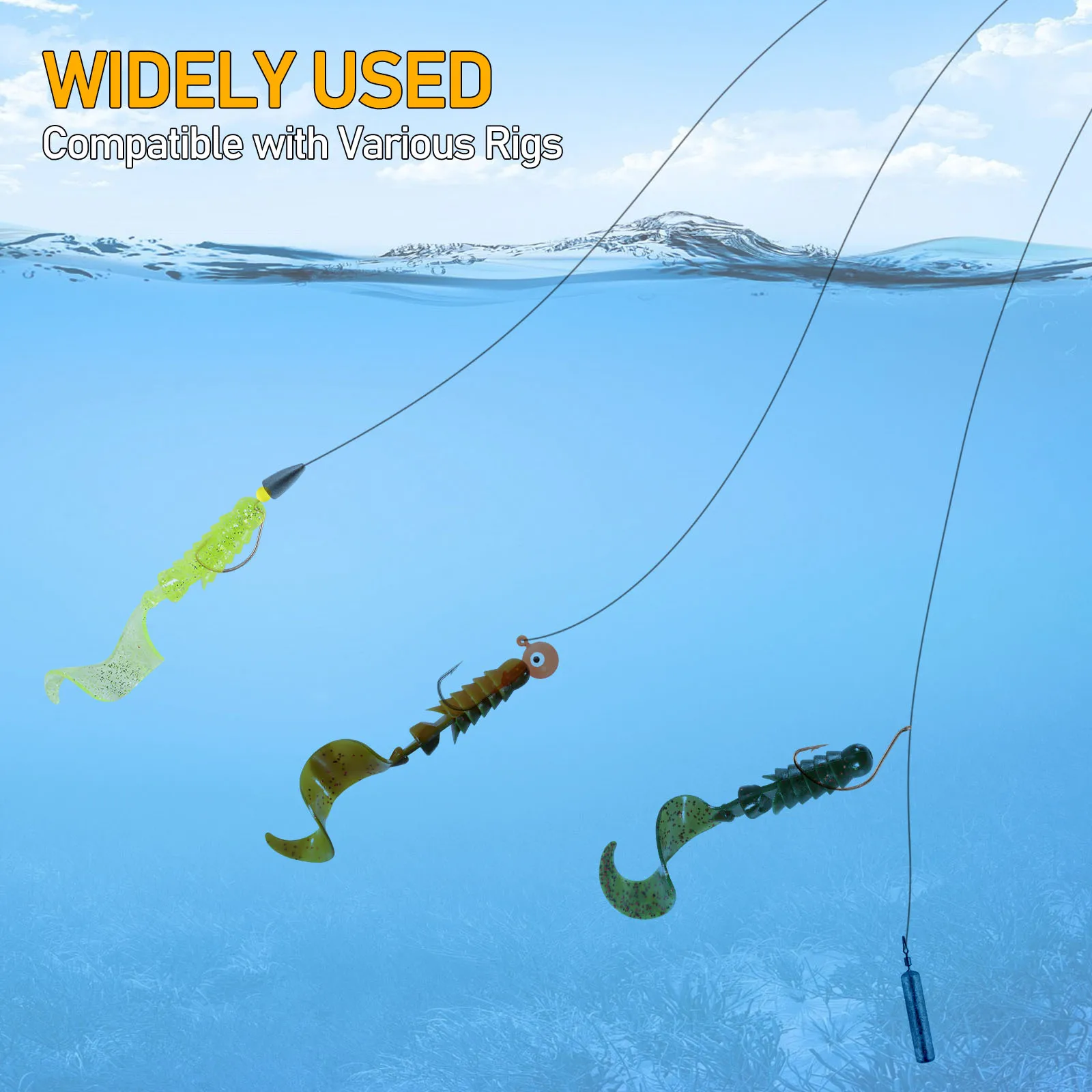 Señuelos de pesca realistas: las secciones acanaladas de estos señuelos imitan el gusano de pesca natural, el cuerpo del señuelo adopta un diseño aerodinámico único, lo que hace que nade más vívidamente bajo el agua con mayor atractivo y ayuda a que el señuelo se deslice suavemente en el agua, lo que facilita su lanzamiento y recuperación.