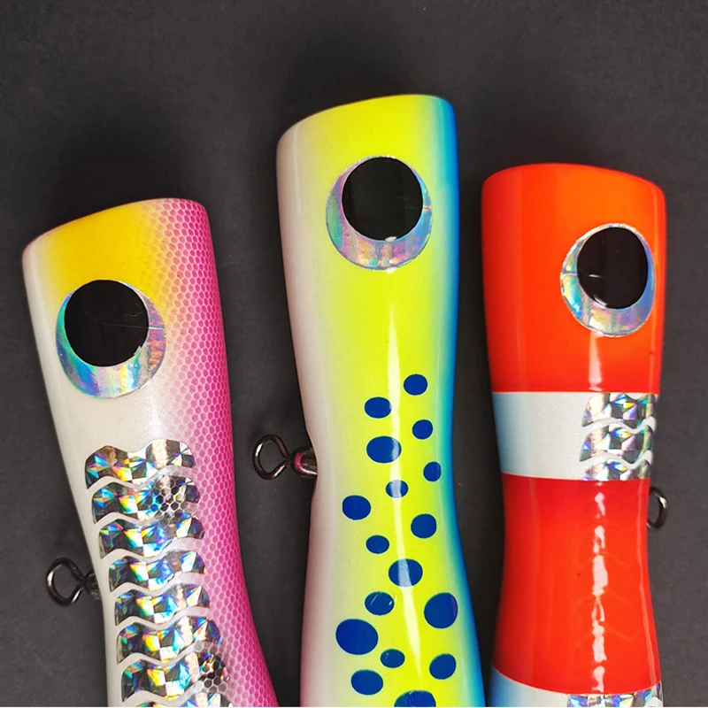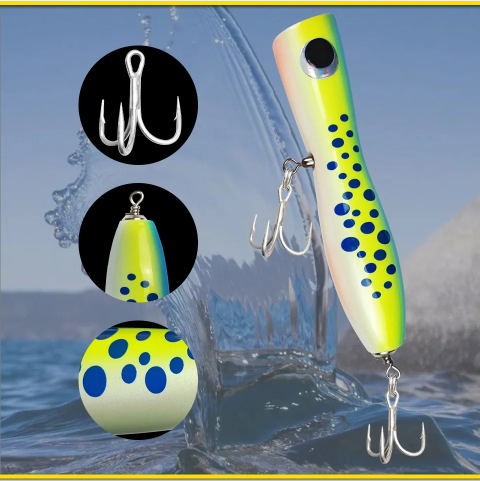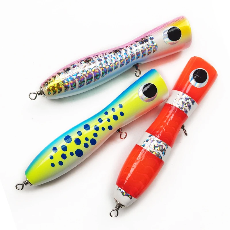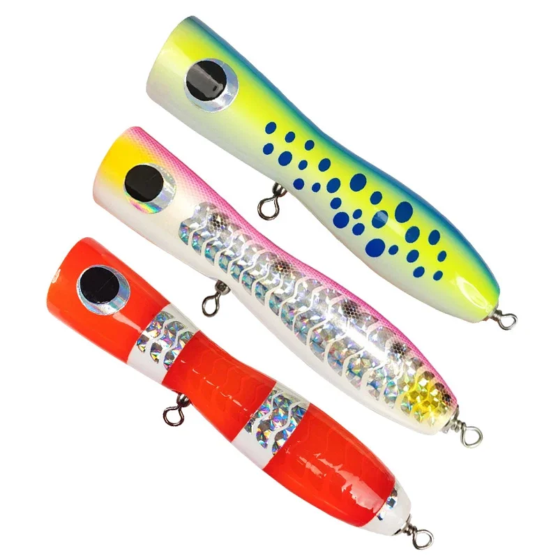 Señuelos Popper de 100g y 20cm para pesca en aguas profundas, aparejos de pesca artificiales para barcos, señuelo de superficie GT, cebo de fundición