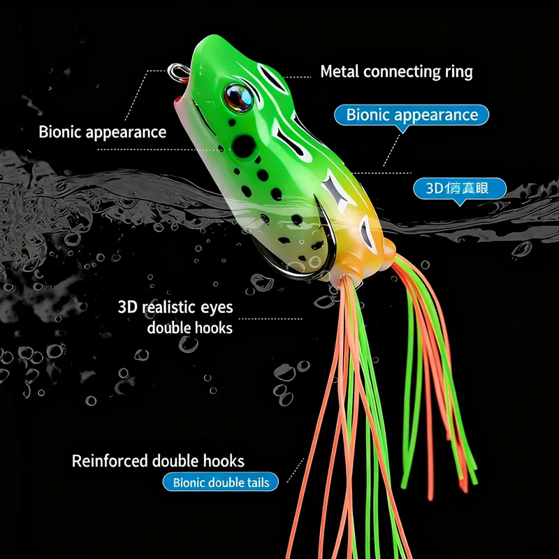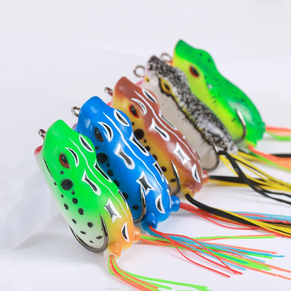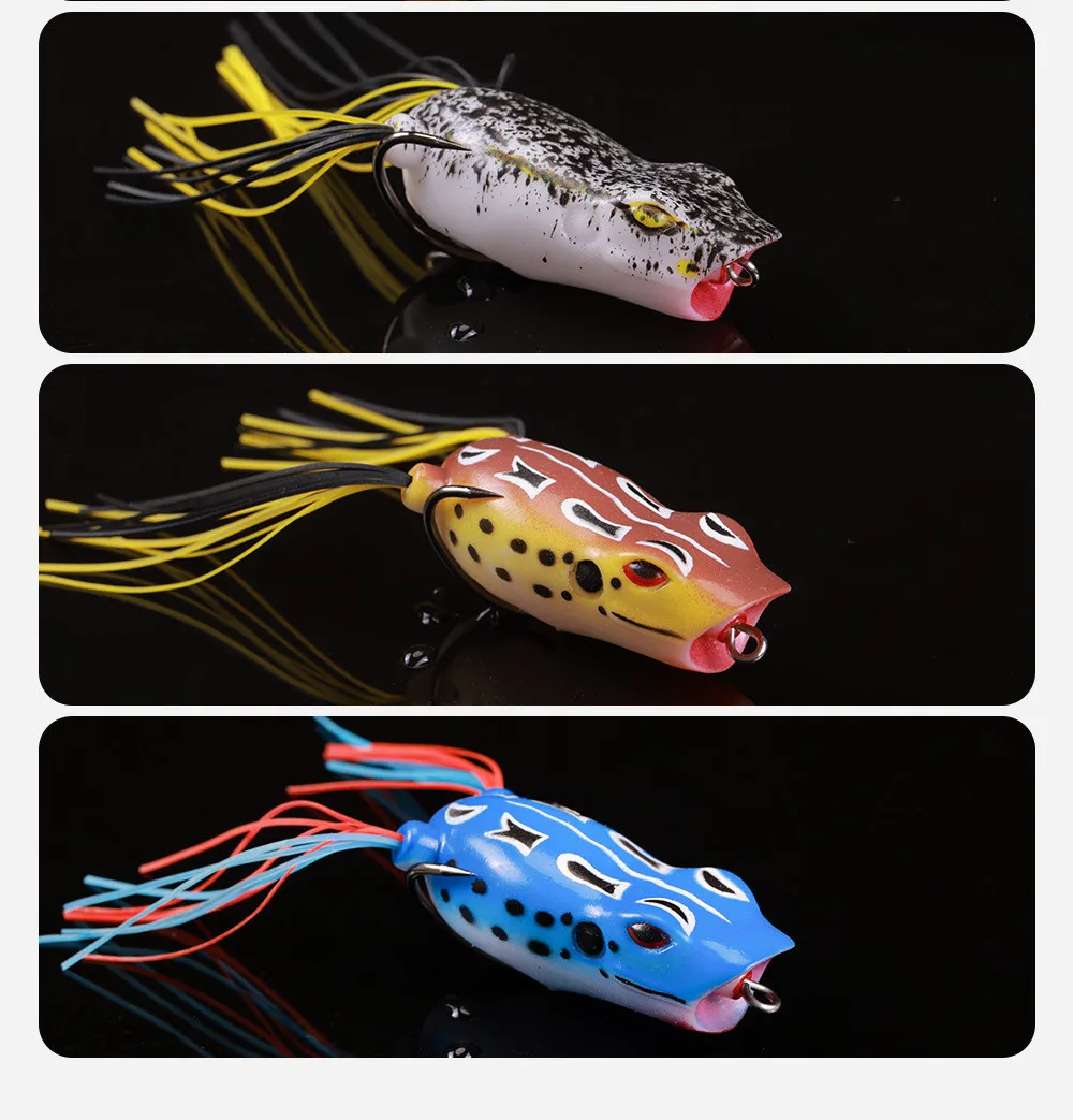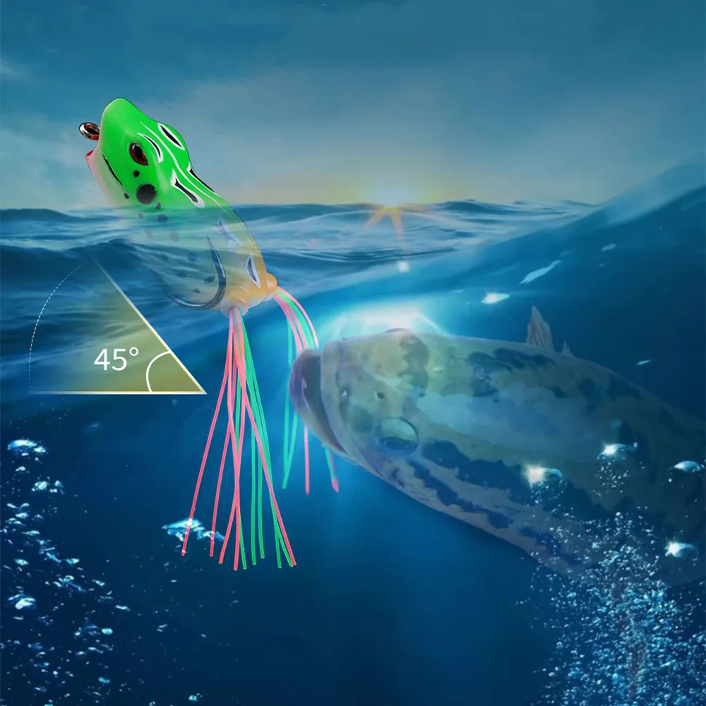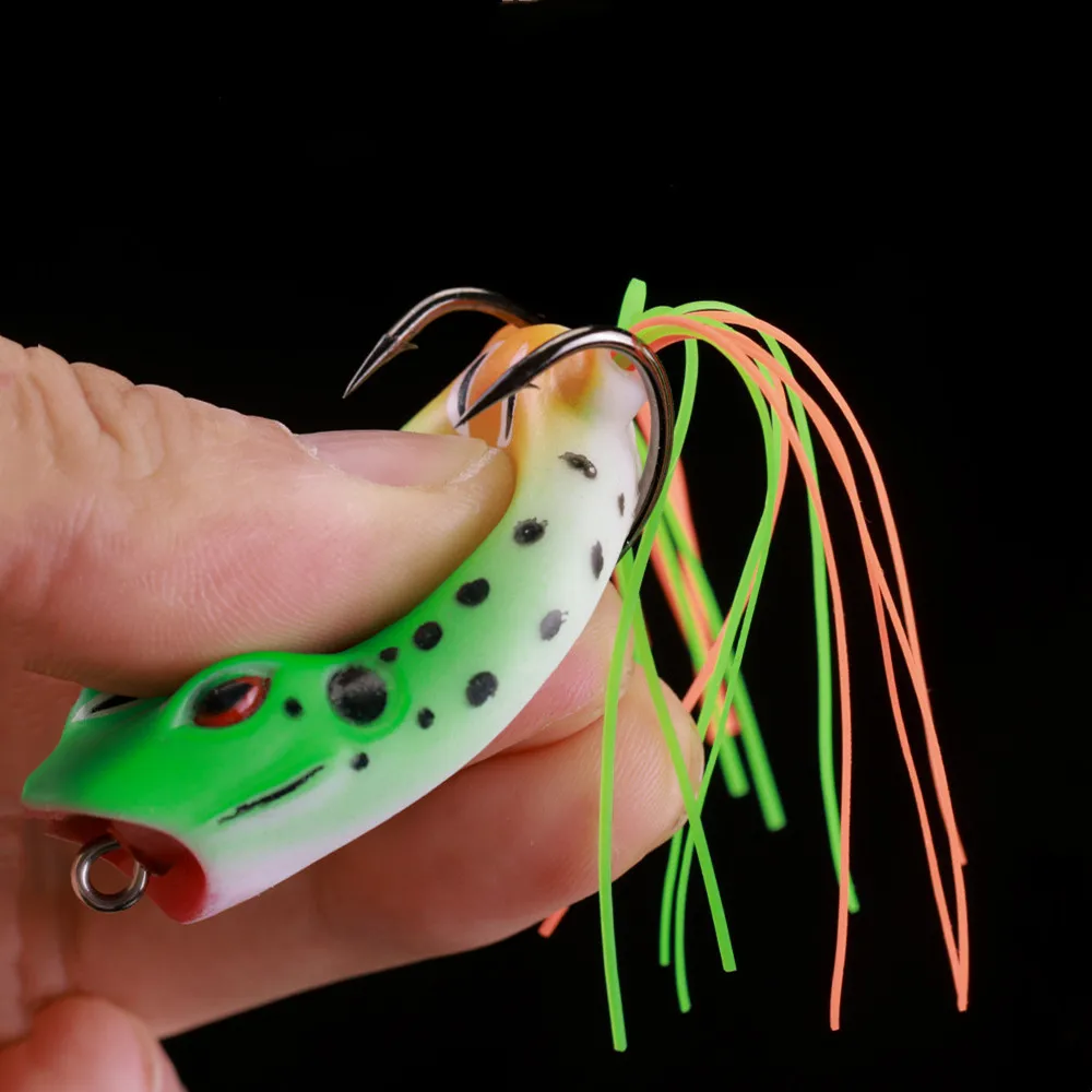 Señuelos de rana Topwater de silicona de boca grande, cebo de lubina realista duradero, flotante, realista para Lucio, cabeza de serpiente, salmón, trucha, bagre, 1 ud.