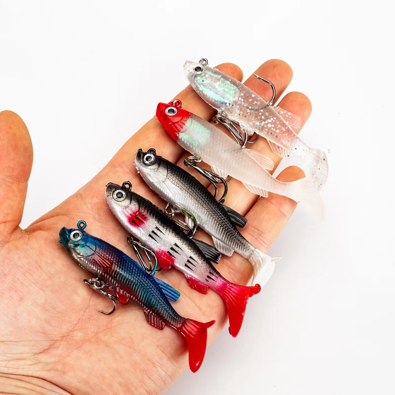 Señuelos de silicona suave Wobbler, cebo Artificial, señuelo de pesca de silicona, lubina, carpa, pesca, cuchara de plomo, plantilla, aparejos, 5 uds.