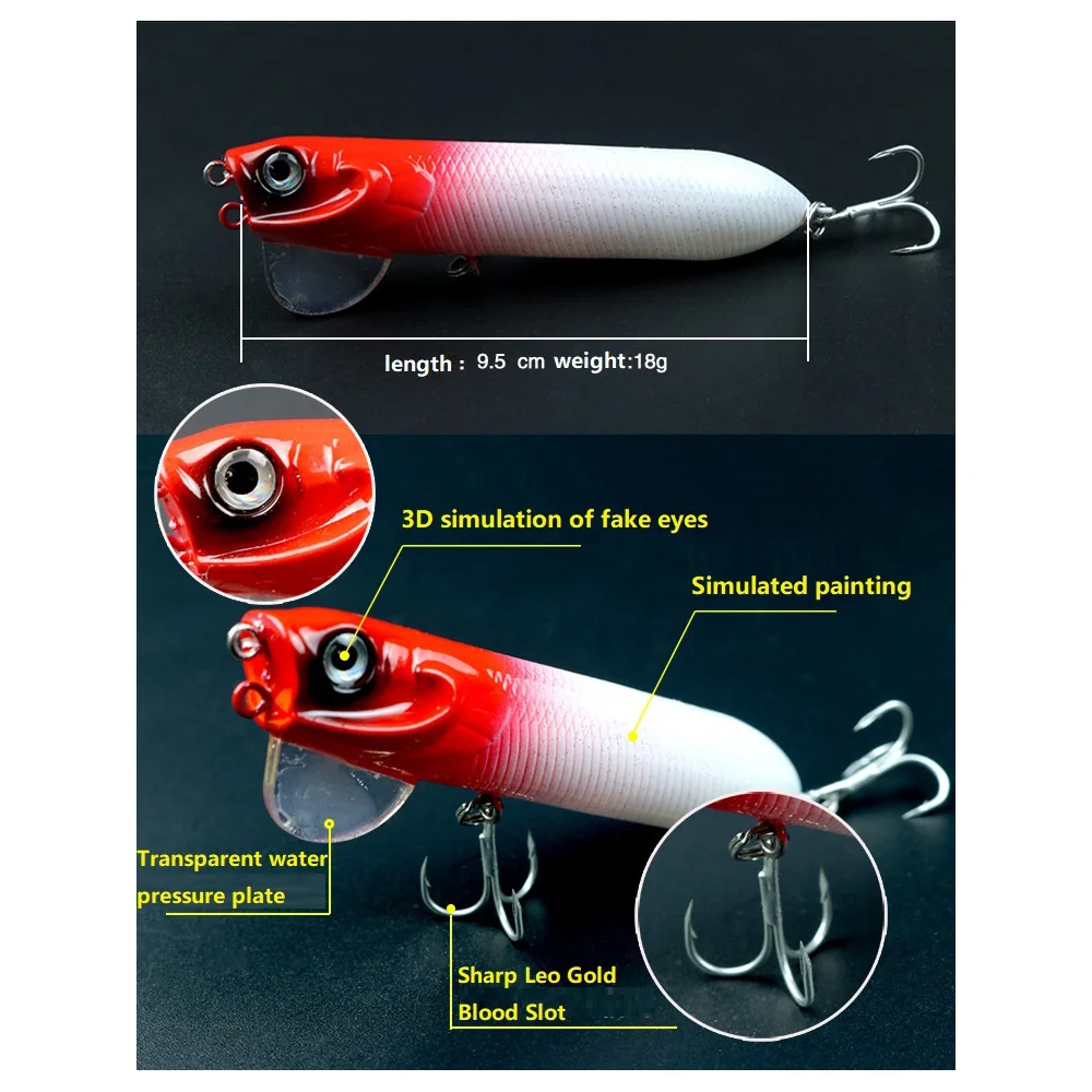 Señuelos de superficie de agua para mago, lápiz duro Wobblers Popper de 9,5 cm/18g, cebo Artificial 3D, andador de serpiente, aparejos de pesca, 1 unidad