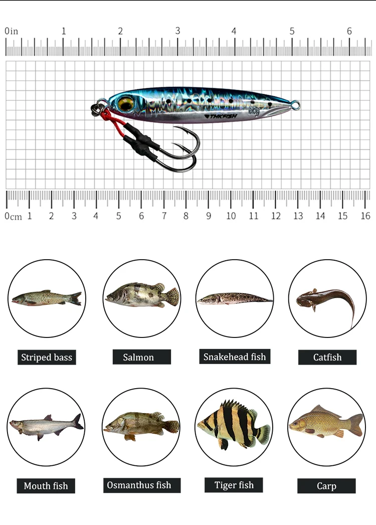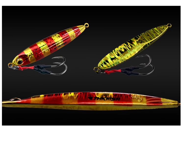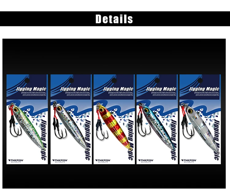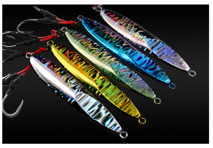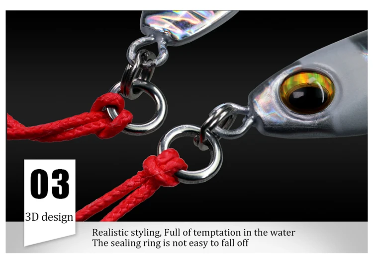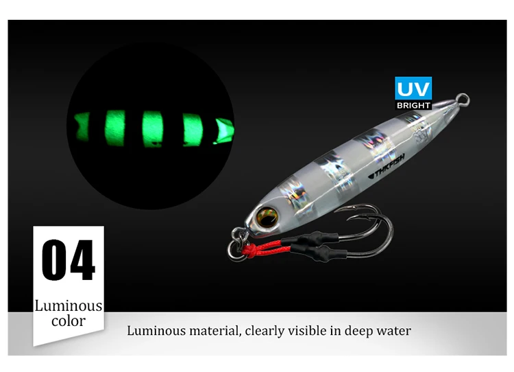 2.La cuchara de jigging equipada con un anillo partido pesado, anillos sólidos, anillos soldados y anzuelos triples en la cola añade más acción. Muy fácil de usar y con su anzuelo afilado y su acabado holográfico se demuestra popular tanto entre los peces como entre los pescadores.