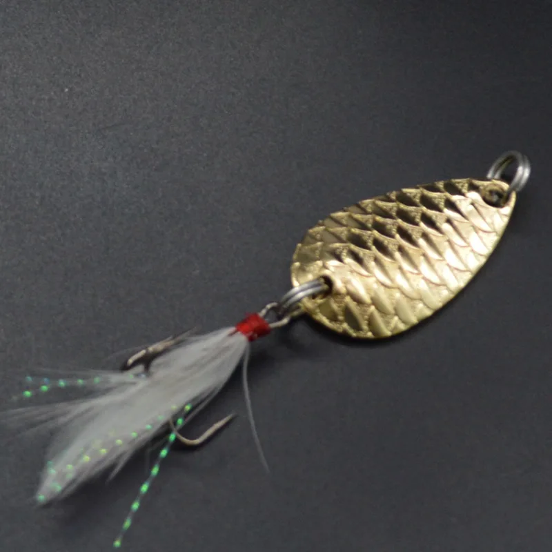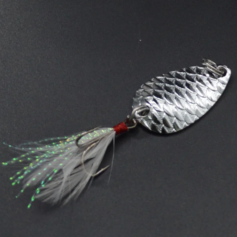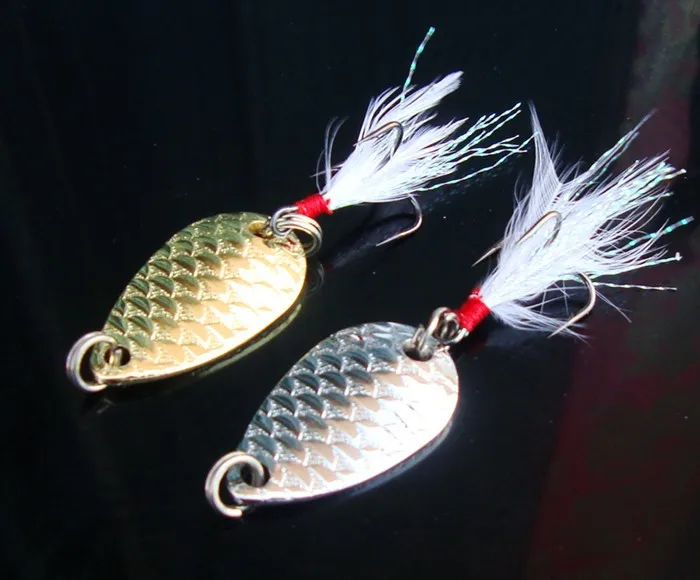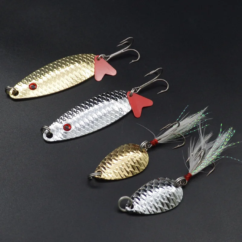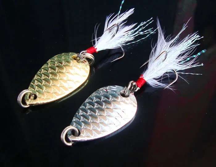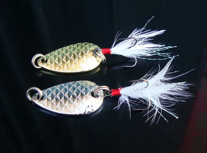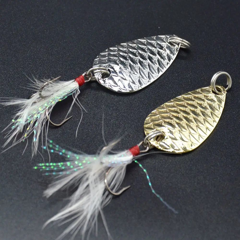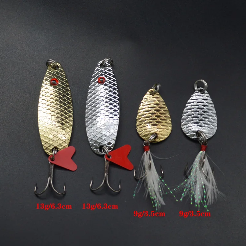 Señuelos tipo cuchara de pesca, anzuelo triple con plantillas de Metal de plumas, cebo duro de 9g, 13g, señuelos artificiales, lote de 2 piezas