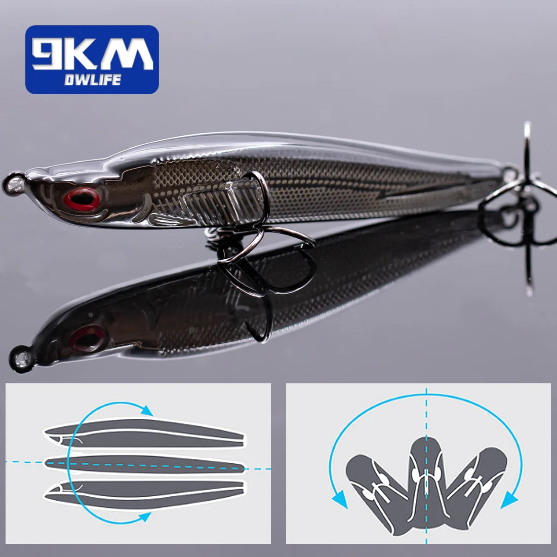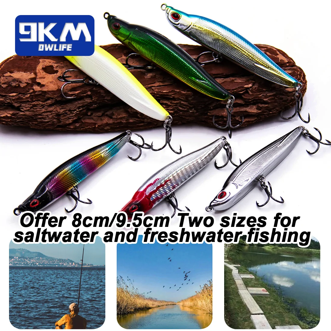 Señuelo de lápiz de cebo duro combinado con un cuerpo pintado de colores realistas y vívidos y un perfil de pez natural, que produce una apariencia realista de los peces y se convierte en un señuelo mortalmente atractivo para que los peces se muevan.
