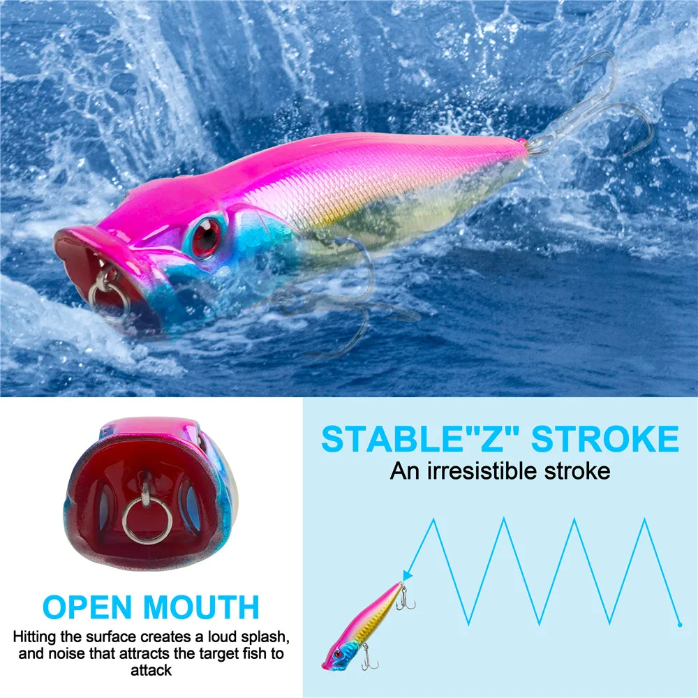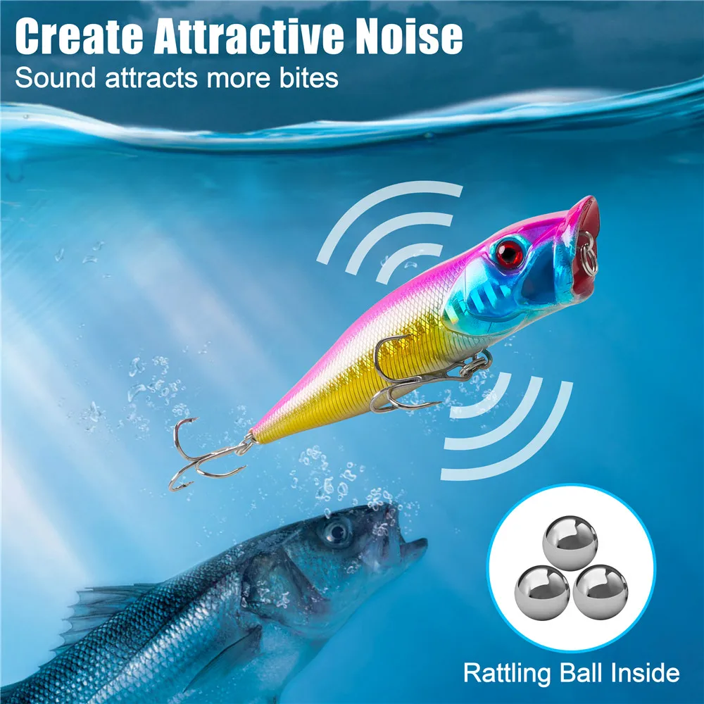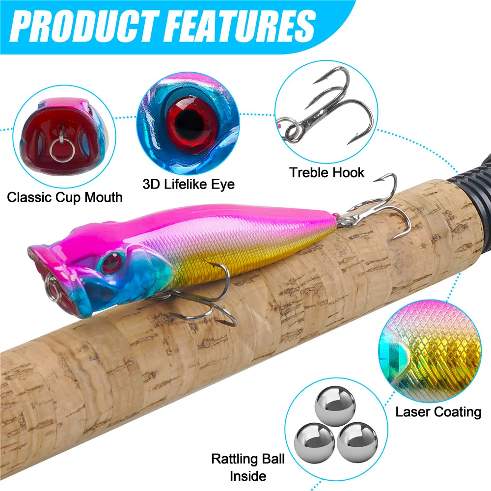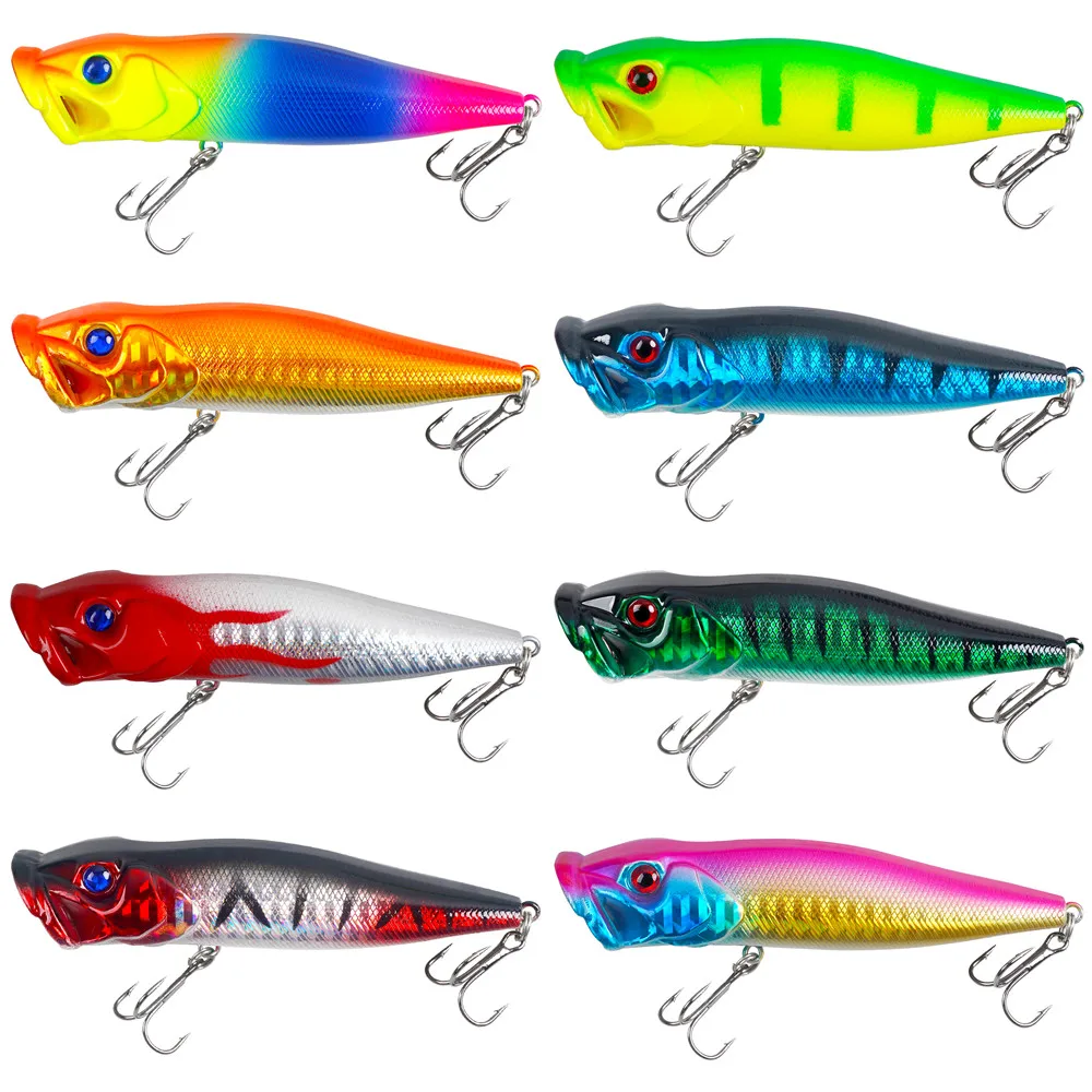 Señuelos de Topwater Popper para pesca de lubina, cebo Artificial flotante, sonajero para trucha, Lucio, salmón, 8 piezas