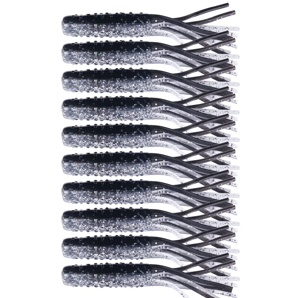 Señuelos de tubo de plástico suave, 10 Uds., 7cm, 3,3g, cebo con falda, brillo multicolor para lubina, Lucio, Pesca de agua dulce y salada