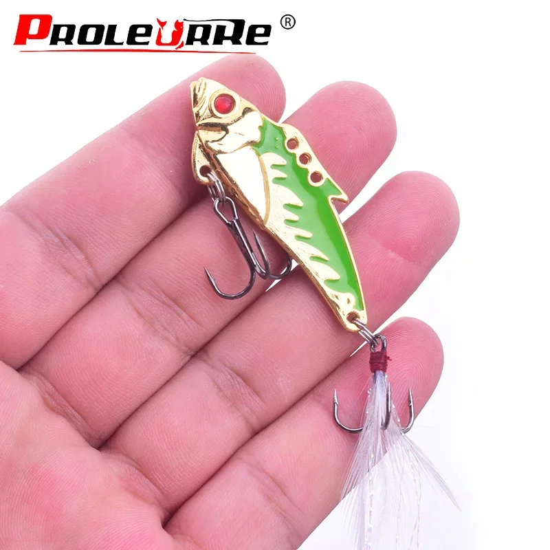 Señuelos VIB de Metal, 6cm, 9g, cuchara vibratoria, señuelo Wobbler, señuelo de pesca, cebo de lubina, anzuelo de pluma Artificial, aparejos de pesca, 1 ud.