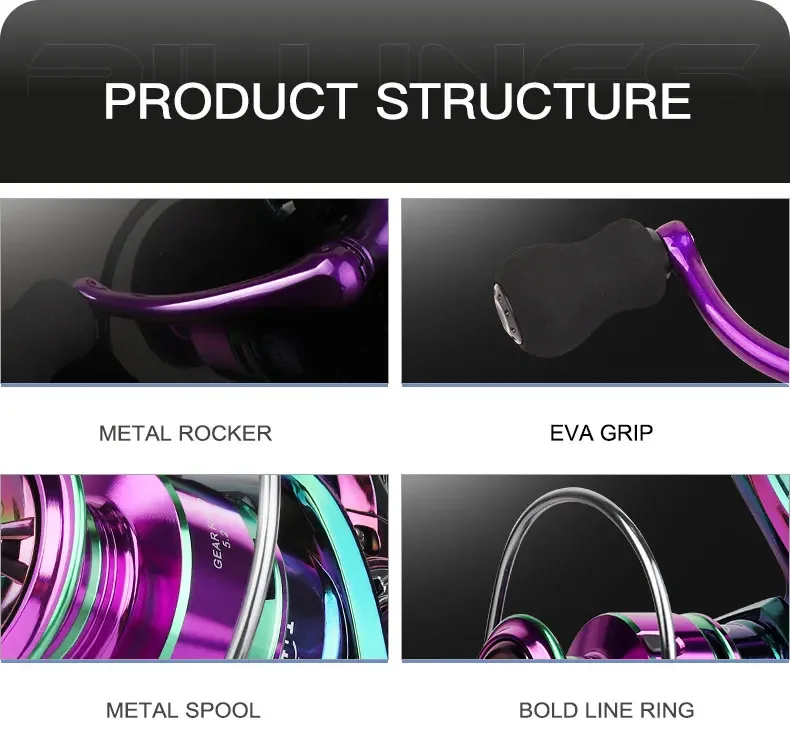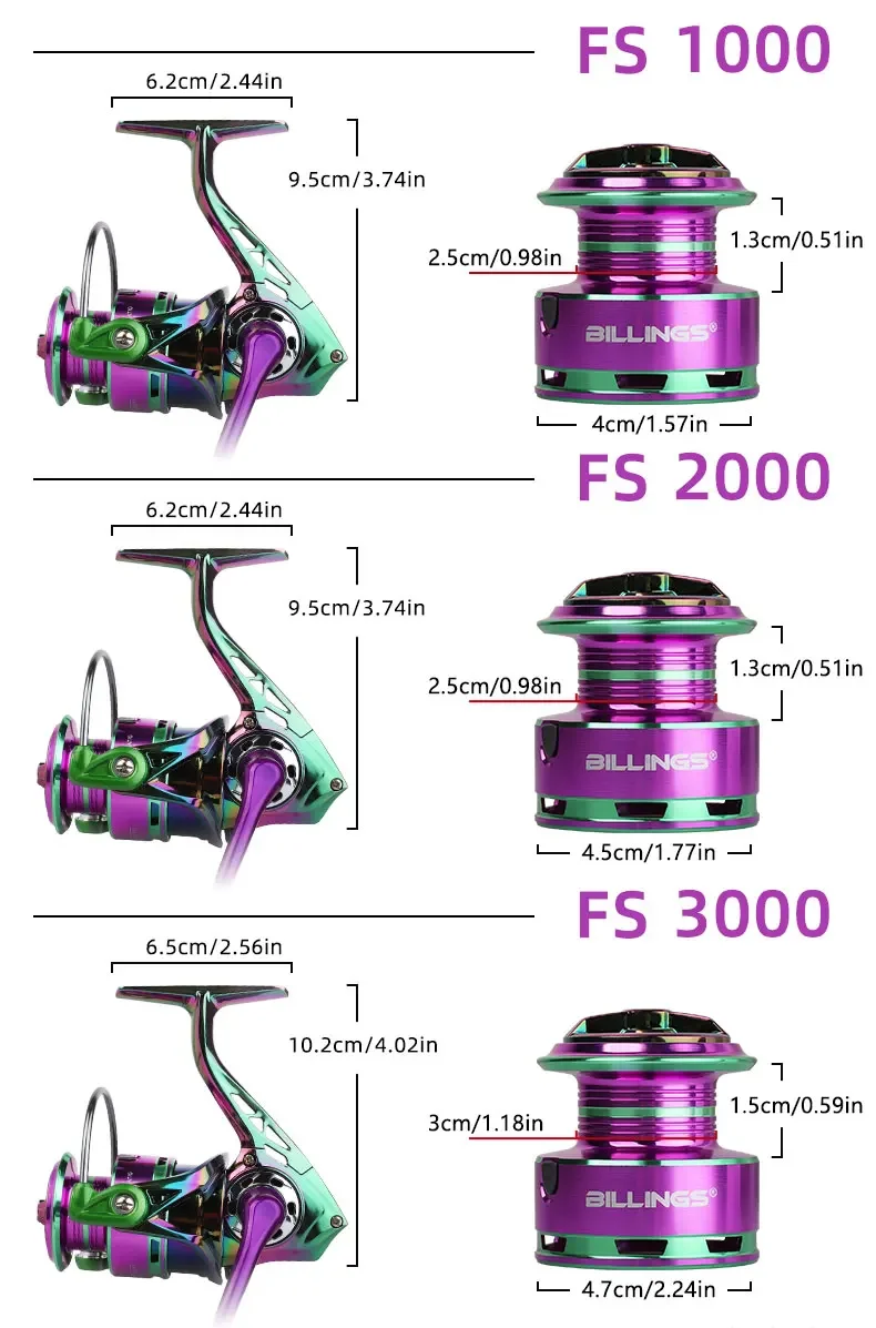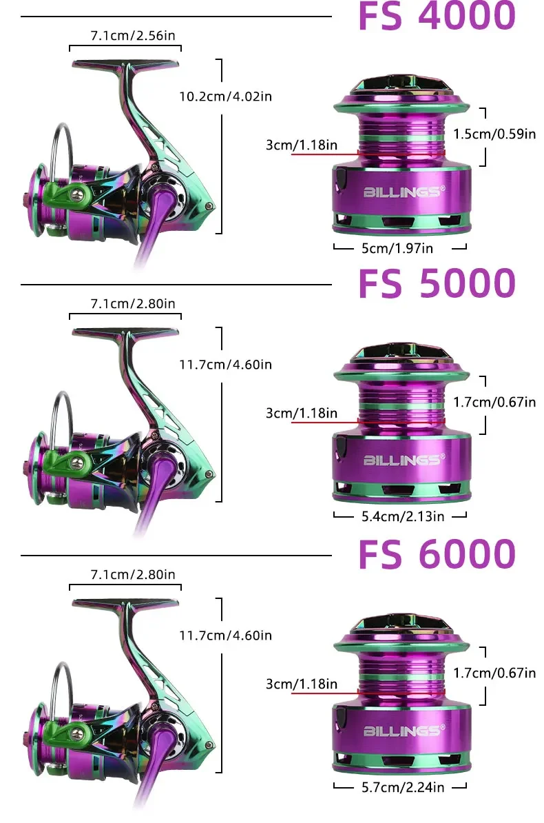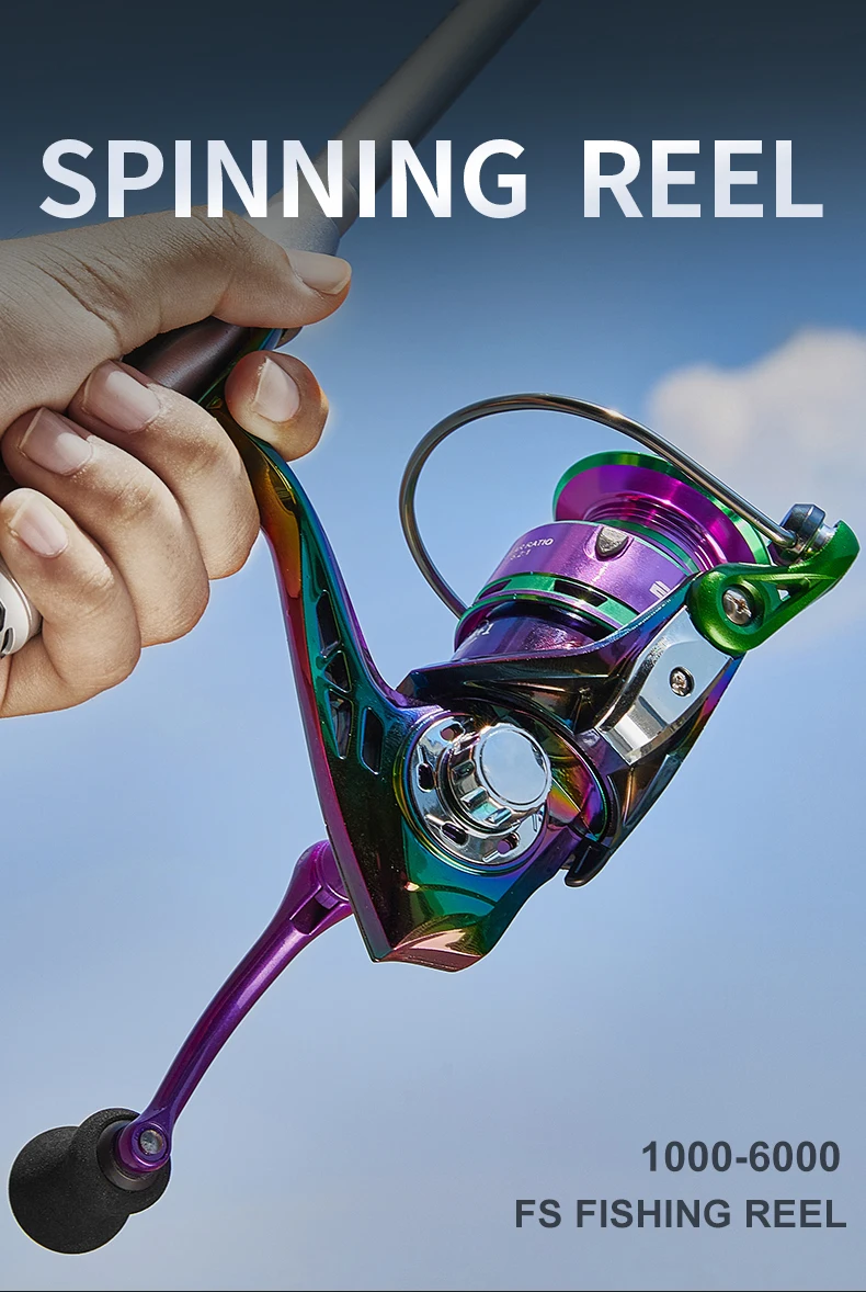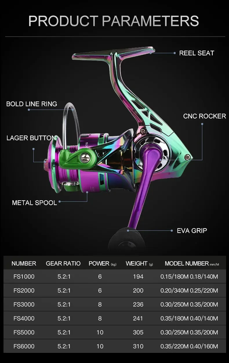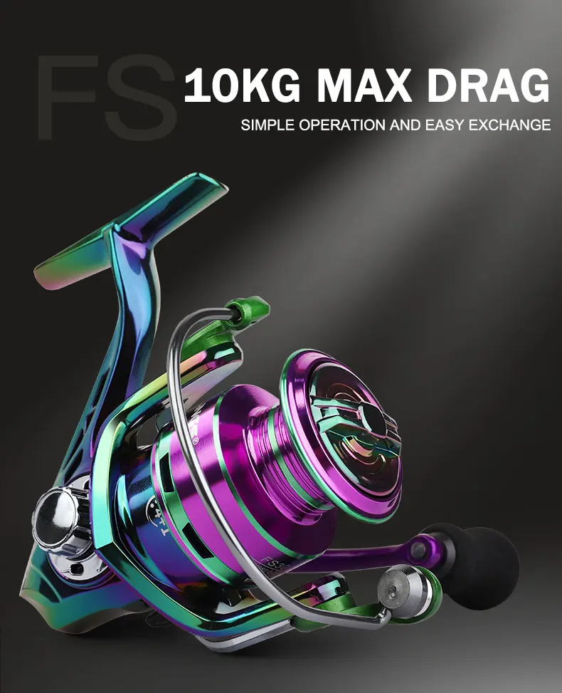 Serie FS 1000-6000, relación de engranaje 5,2: 1, arrastre máximo de 22 libras, carrete de metal, carrete de pesca giratorio, para agua dulce