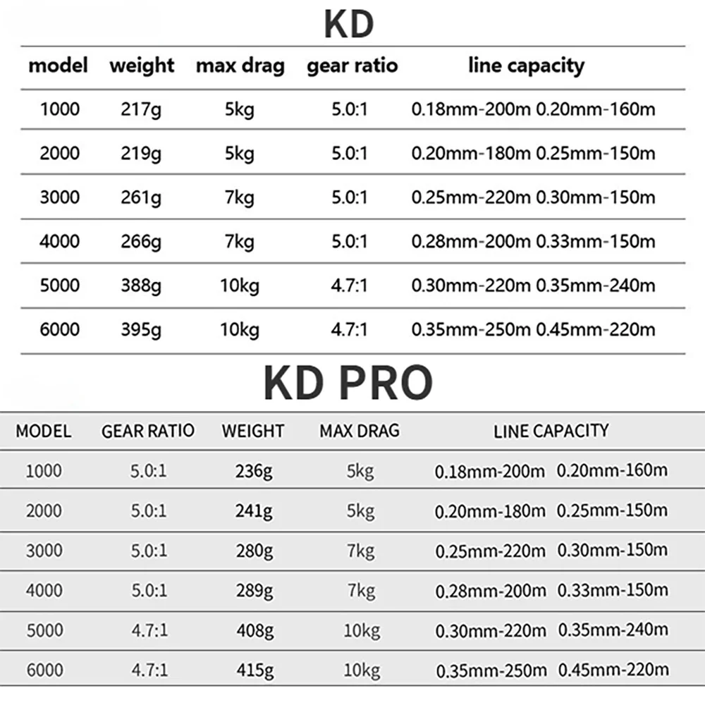 Serie GLS KD 1000-6000, relación de engranaje 5,0:1/4, 7:1, arrastre máximo de 22 libras, balancín de Metal, carrete de pesca giratorio, para agua dulce y salada