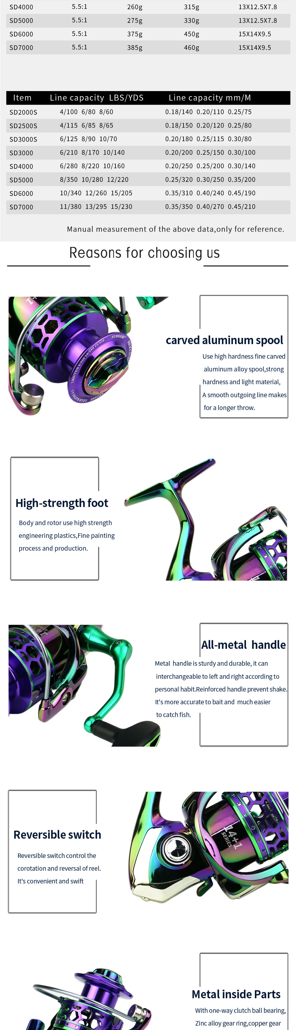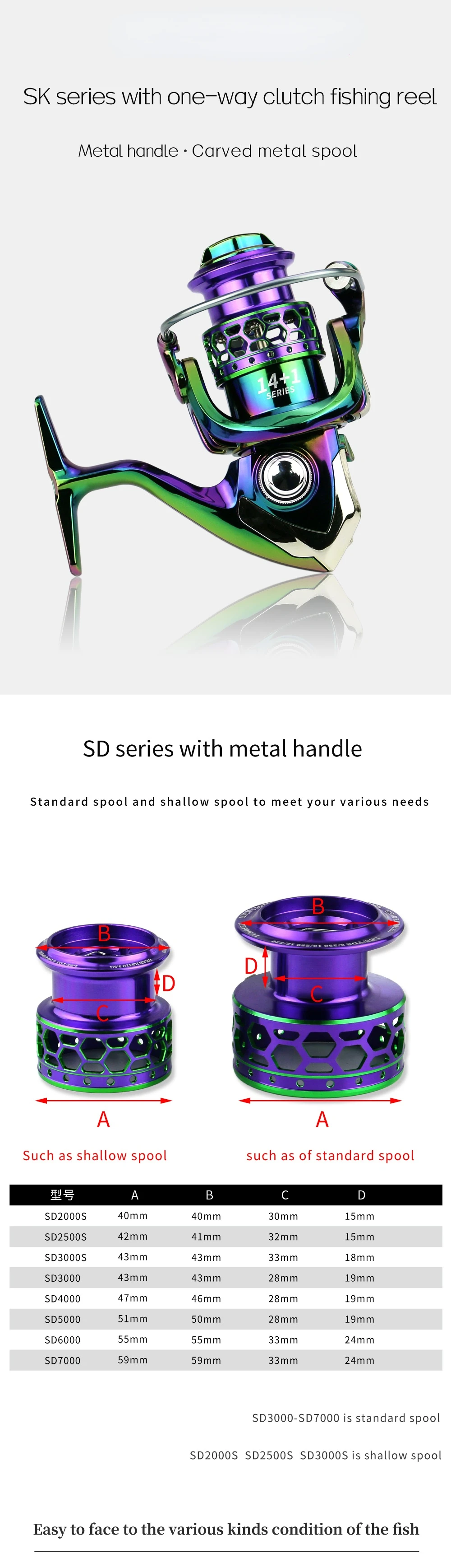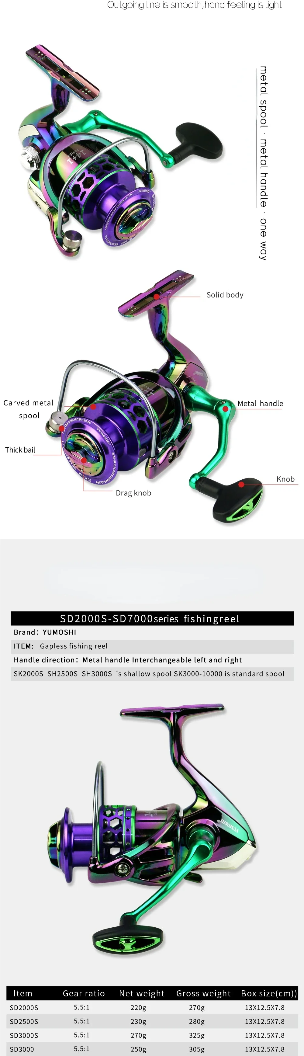 Serie SD 2000-7000 izquierda/derecha, relación de engranaje 5,5:1, arrastre máximo de 22 libras, balancín de Metal, carrete de pesca giratorio, para agua dulce y salada