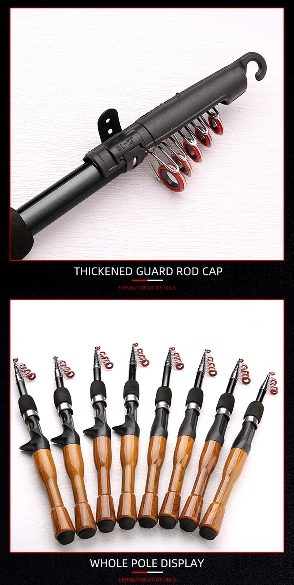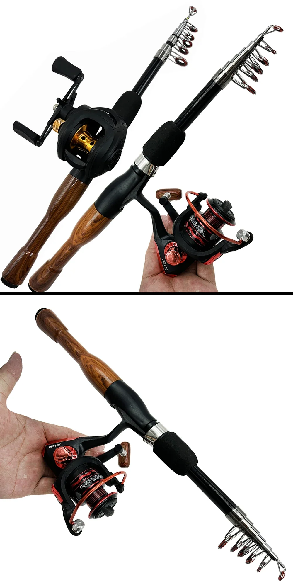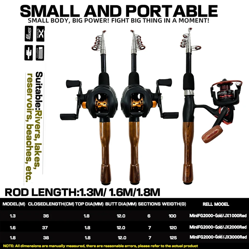 La varilla🌟Tipo:Mini señuelo telescópico caña de pescarLongitud de la varilla:1,3 M 1,6 M 1,8 M36 / 37 / 38Sección: 6 7 7