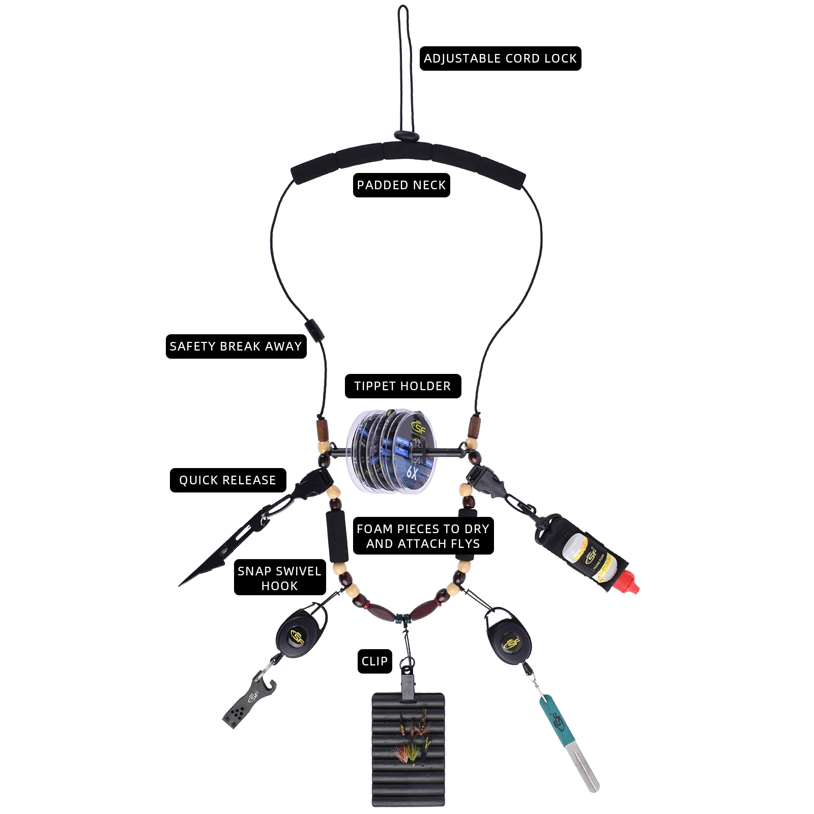 SF Fly Fishing Neckvest Lanyard Combo negro ajustable portaherramientas con correa de espuma para el cuello Horizontal Tippet Bar liberación rápida para accesorios de pesca