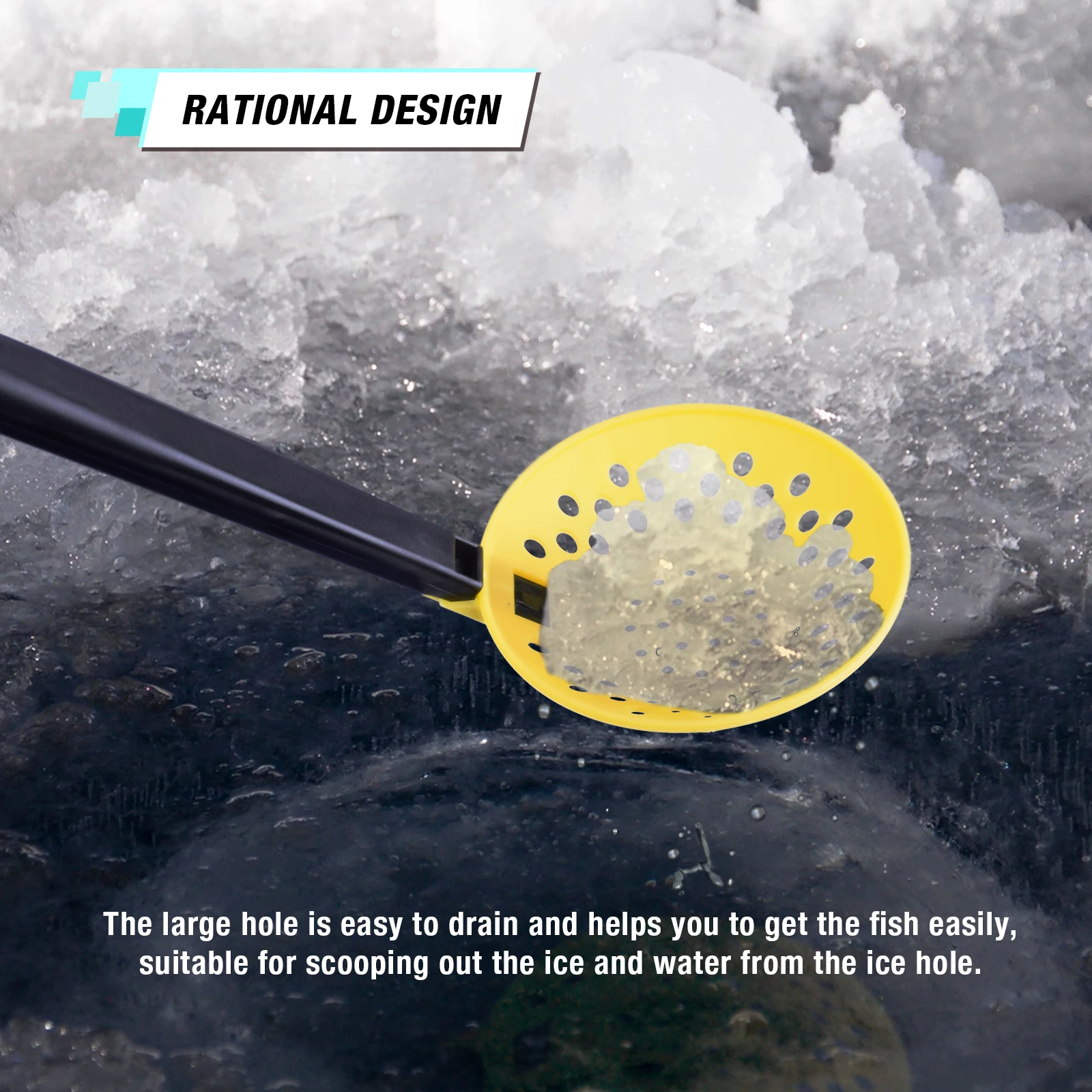 El orificio grande es fácil de drenar y te ayuda a coger los peces fácilmente, adecuado para sacar el hielo y el agua del orificio del hielo.