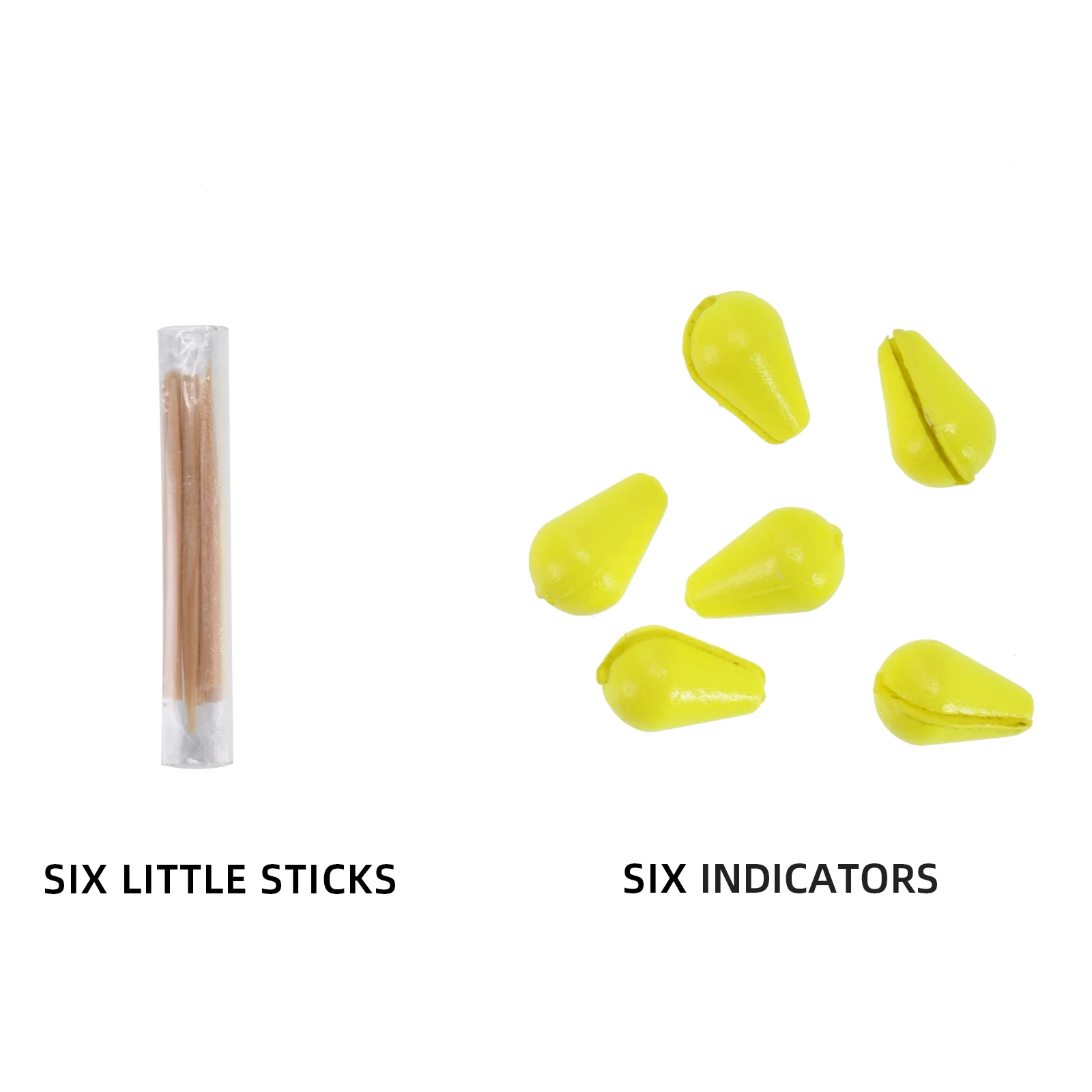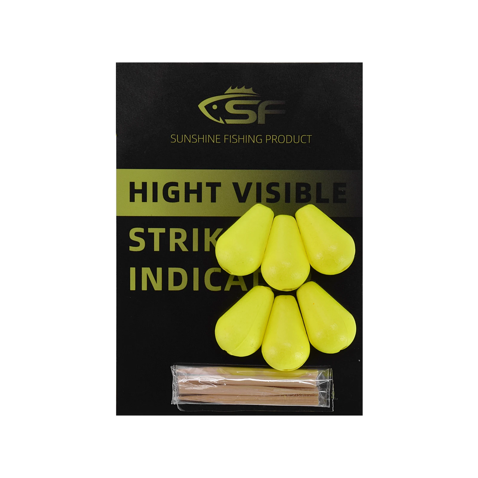 SF 6 piezas pesca con mosca lágrima huelga indicadores amarillo fluorescente con palillo de dientes