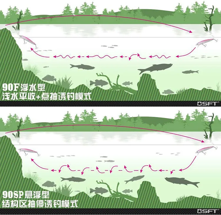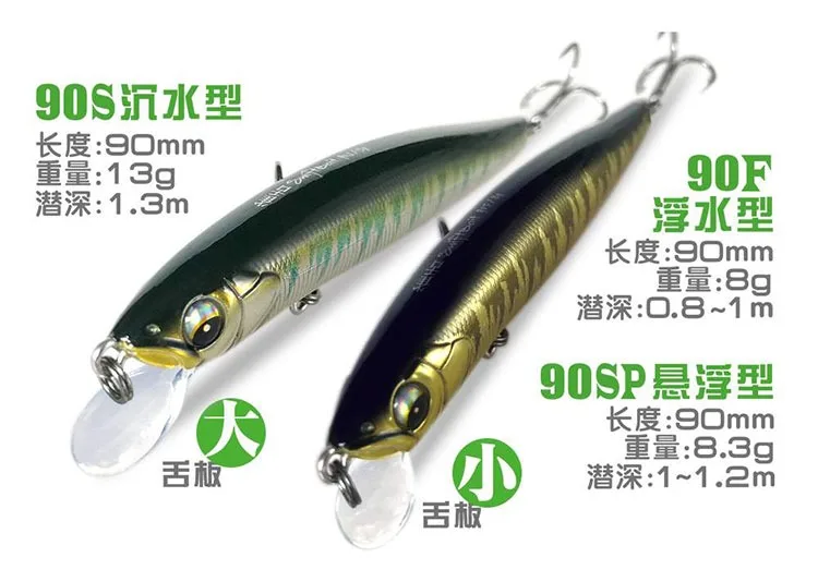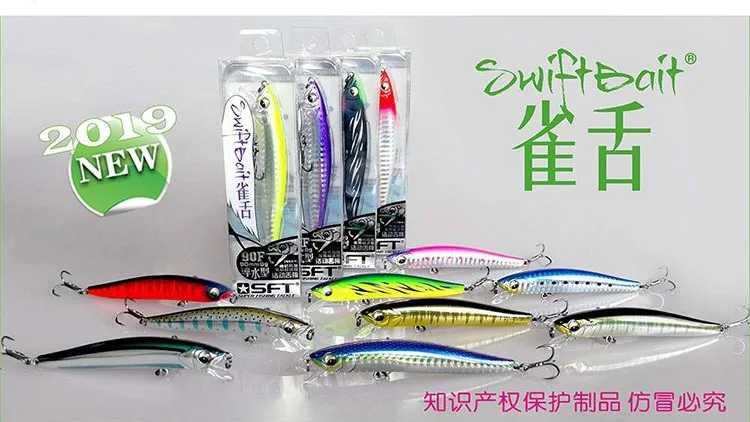 SFT-cebo falso con lengua de gorrión para pesca, perca suspendida de larga distancia, común en agua dulce y mar, 90F, 8g