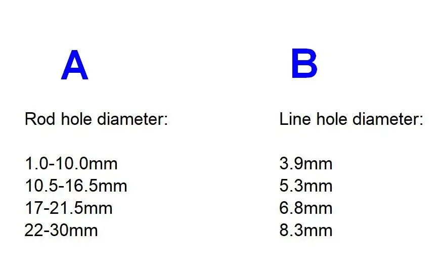 Atención:Si se muestra 1/,0 mm o 1+,0 mm,=1,0 mm, es el diámetro interior del orificio de la caña de pescar.Agregamos aquí las mejores opciones de guía solo para facilitar el pedido de un conjunto completo; sabemos qué guía superior se adapta a estas guías laterales.