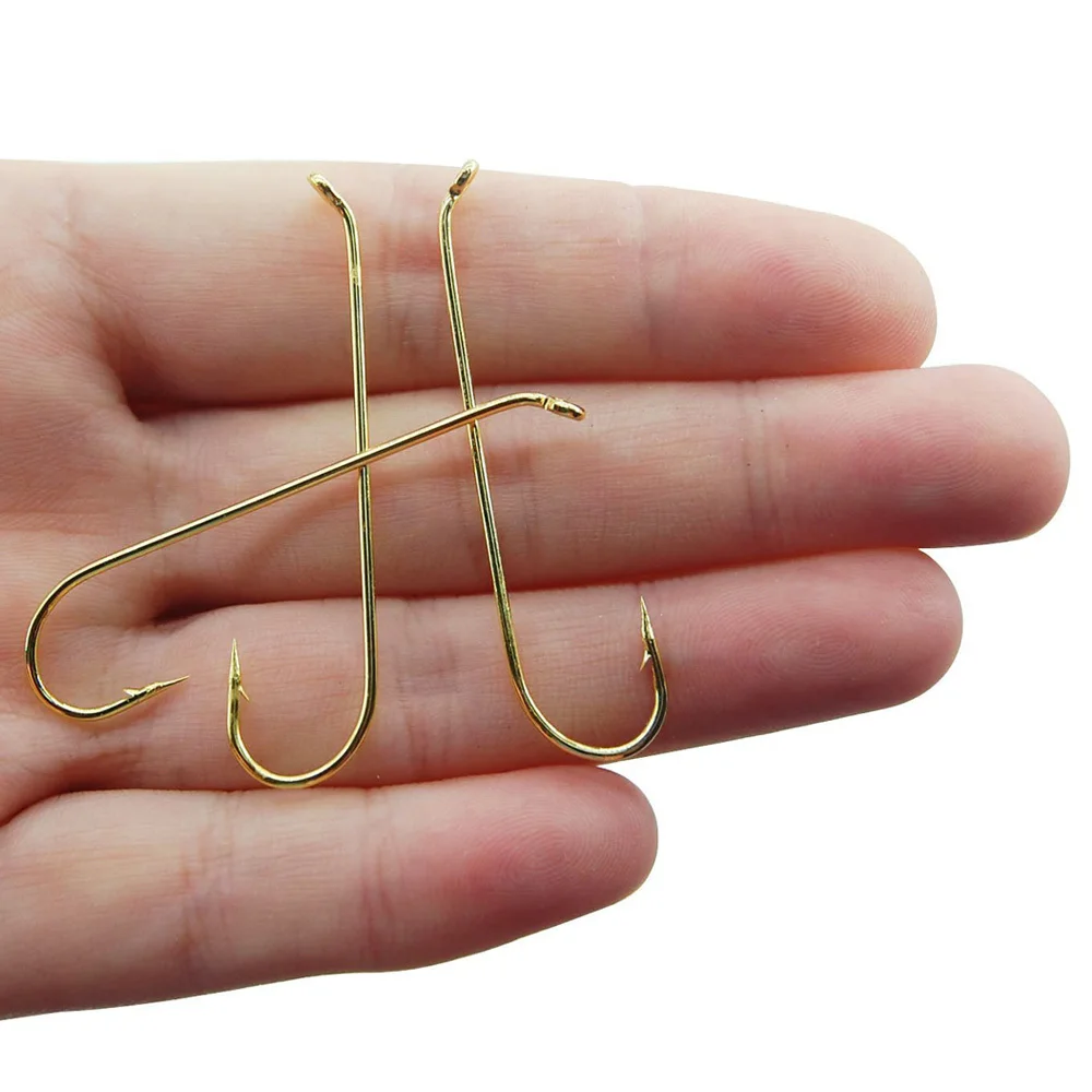 Shaddock pesca 300 piezas/caja ganchos de mosca dorada serpentina de caña larga atado de mosca ganchos de pesca conjunto con caja