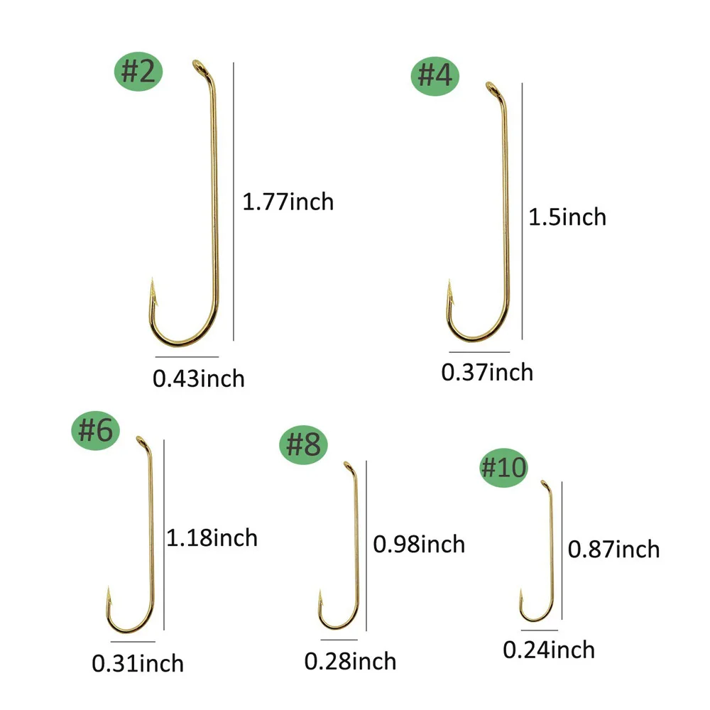 Cantidad de tamaño:2 #: 30 piezas4 #: 40 piezas6 #: 60 piezas#8: 80 piezas10 #: 90 piezasNuestros ganchos para moscas ofrecen una calidad de estante superior a un precio asequible.Nuestros ganchos para moscas están fabricados con acero al carbono extremadamente fuerte y tienen puntos químicamente afilados que siempre están afilados directamente del paquete.El diseño de minipúa permite que el gancho penetre más fácilmente dándote más enganches.