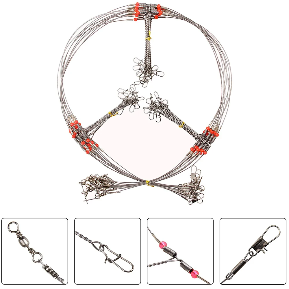 1.Wire Leader Rigs are made of High-strength Stainless Steel and Abrasion Resistant,complete with snaps, swivels and red beads