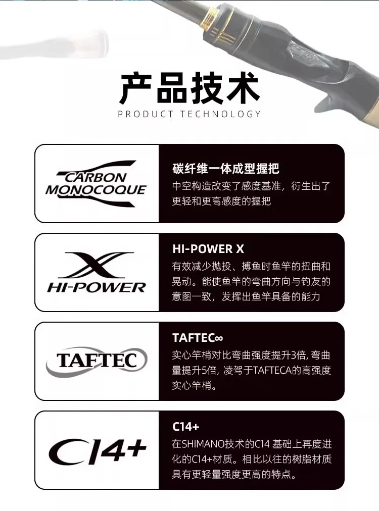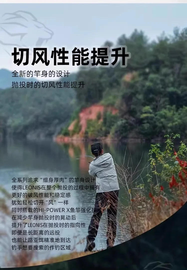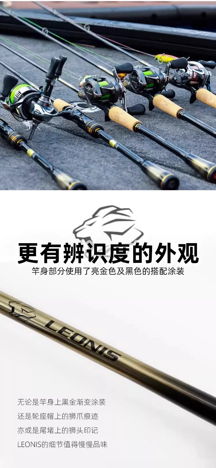 Combining "lightweight, sensitivity, and stickiness", the Shimano shore casting rod series LEONIS is designed for anglers who love fishing for black bass. The entire series adopts a thin and thick rod body design to provide better wind-breaking performance when casting. The HI-POWER X structure on the rod body can suppress the shaking of the rod body during casting and bait control, give full play to the performance of the rod's tonality design, and improve the casting distance and the stability of the fake bait operation. The handle adopts one-piece carbon fiber grip technology, which increases the sensitivity of the entire rod while improving the lightweight of the rod. When facing the weak bite from the target fish, it can also capture the bite well. The setting of the overall stickiness of the rod body can exert excellent control through force bending after the fish is caught, making the whole fishing process full of excitement and fun.