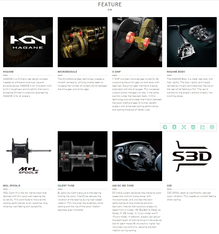 The pinnacle freestyle reel, Antares DC MD. The flagship that challenges the world is equipped with low inertia MGL spool III and NEW 4 x 8DC MD TUNE, and has evolved into a model with further fighting power. Long cast performance and trouble-free performance that surpasses conventional cast performance are realized by the synergistic effect of light rise and elongation during casting with MGL spool III, and uneven brake control accuracy with NEW 4 × 8 DC MD TUNE. In addition to the micro module gear that brings silky rotation performance, the drive gear shaft support bearing is increased to adopt a more robust support structure. Reduces rattling of the handle and brings smoother reeling. A sense of dynamism and confidence that comes from a flowing body. Accumulated solid history. It is the pinnacle of freestyle DC that leads anglers aiming for heights to further heights.
