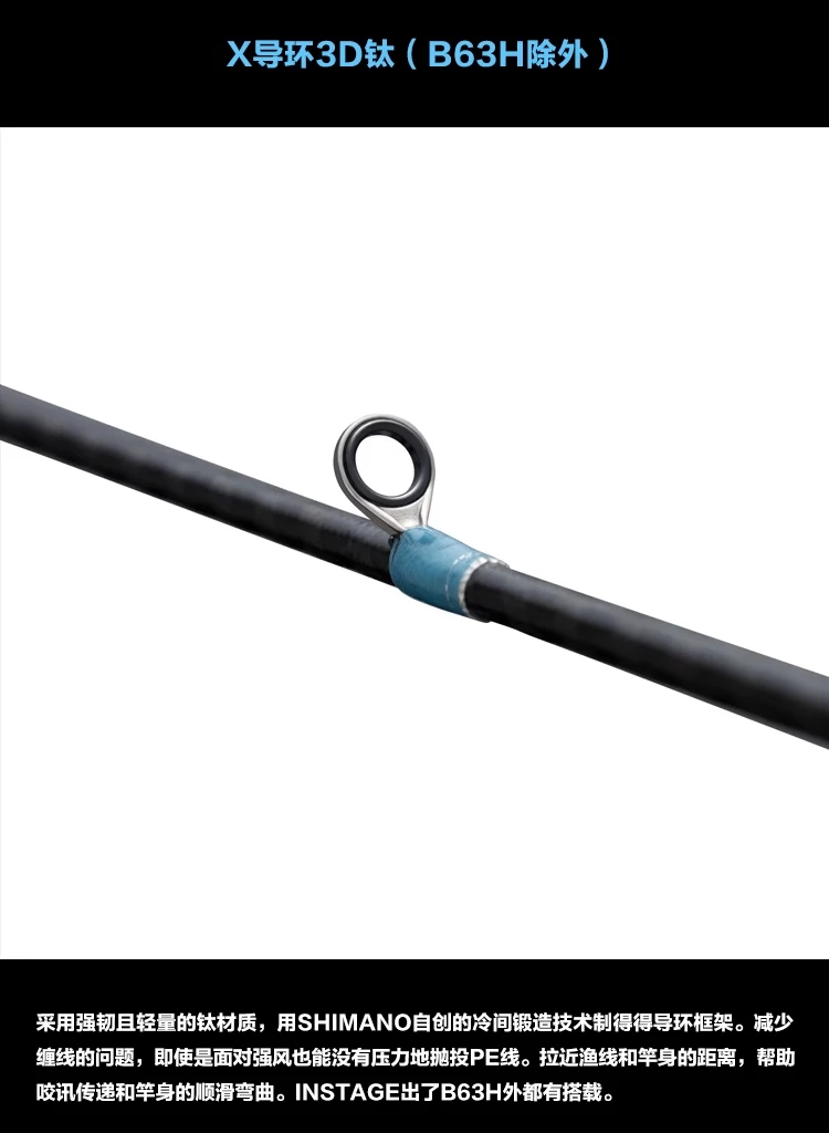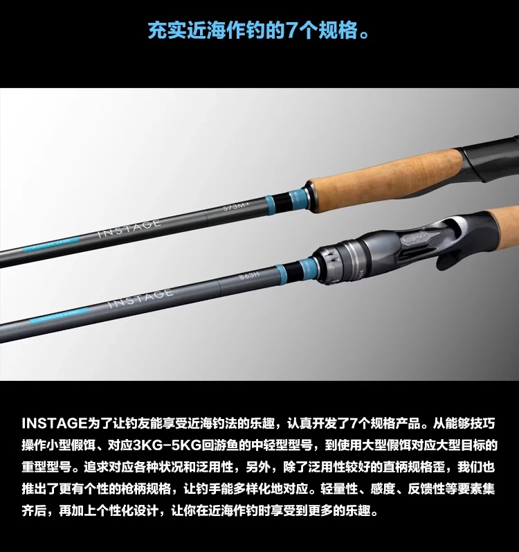 Disfruta de la diversión de la pesca en alta mar libremente en el barco. Da un paso y podrás conocer varios encuentros nuevos. Se lanza el nuevo "INSTAGE" para disfrutar de esa diversión. Puede atacar varios objetivos como lubina, besugo, caballa española, pez azul, etc. Desde pequeños señuelos de menos de 10g hasta grandes señuelos de más de 100g, es aplicable a una amplia gama de áreas. La tecnología SPIRAL X CORE se utiliza en el cuerpo de la varilla para mantener una alta resistencia al tiempo que mejora la ligereza y la nitidez, logrando una fundición de alta precisión. La estructura ligera, hueca y de pared delgada del agarre moldeado de una pieza de fibra de carbono mejora la ligereza y la retroalimentación, y logra una alta sensibilidad. El ángulo y la forma del anillo guía X se obtienen a través de cálculos precisos, que tienen un rendimiento antienredos y una liberación de línea suave.