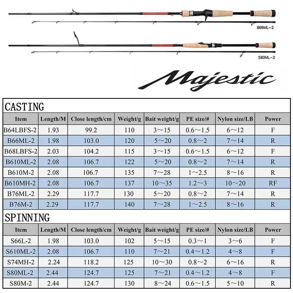 SHIMANO-caña de pescar Majestic, giratoria/fundición, potencia F/R, 1,93 M, 2,08 M, 2,29 M, palo de pesca de carbono de aluminio