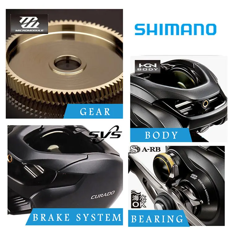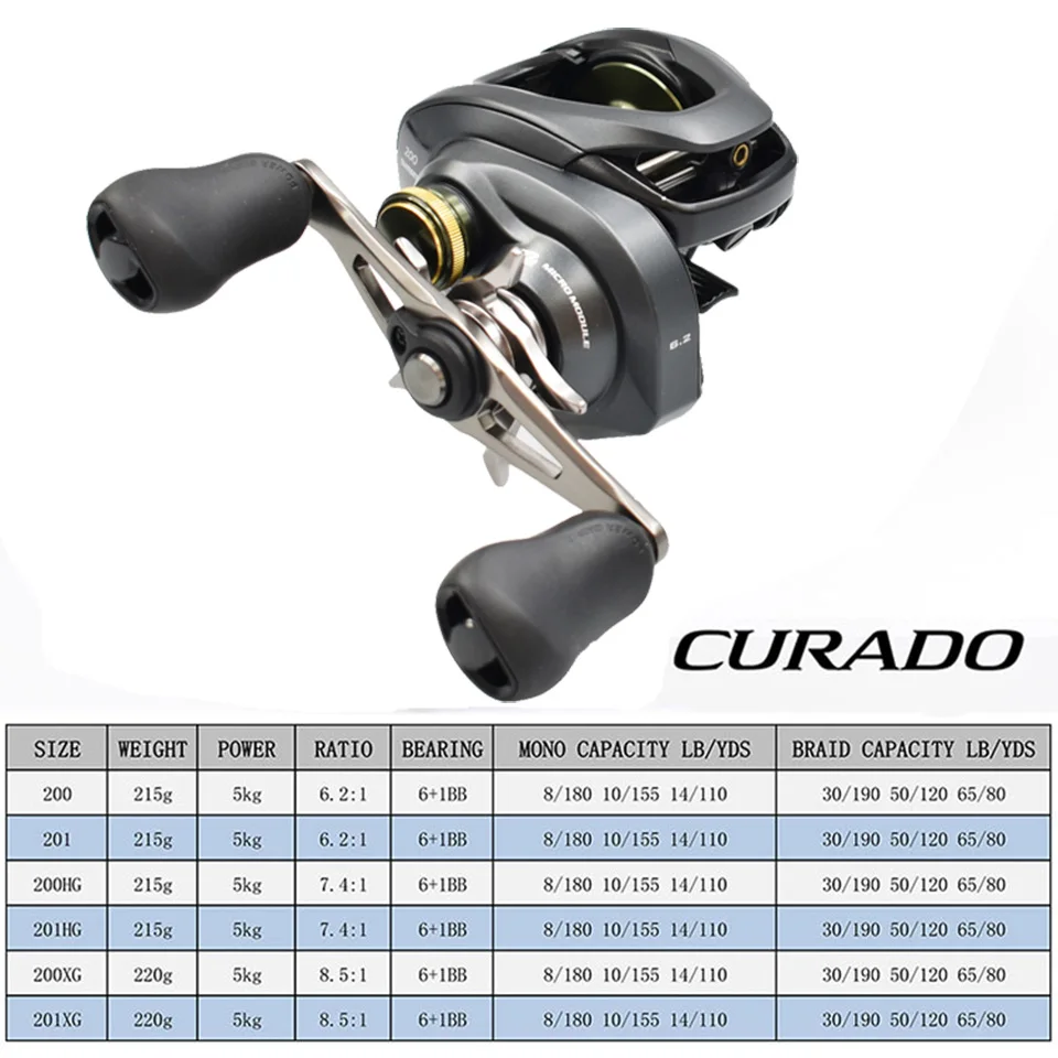 Construido tournament tough, Curado es el punto de referencia para la fiabilidad y la durabilidad. Generaciones de pescadores han considerado Curado como su socio de confianza. Shimano te ofrece más que nunca con los nuevos carretes de la serie Curado K. Ahora con la última tecnología Shimano, como la engranajes micromodulos Súper suaves, eficientes y duraderos, y se ofrece en múltiples proporciones de engranajes de hasta 8,5: 1,. Curado se basa en su legado como el carrete de baitcasting 'go to' para la acción de agua dulce y salada.