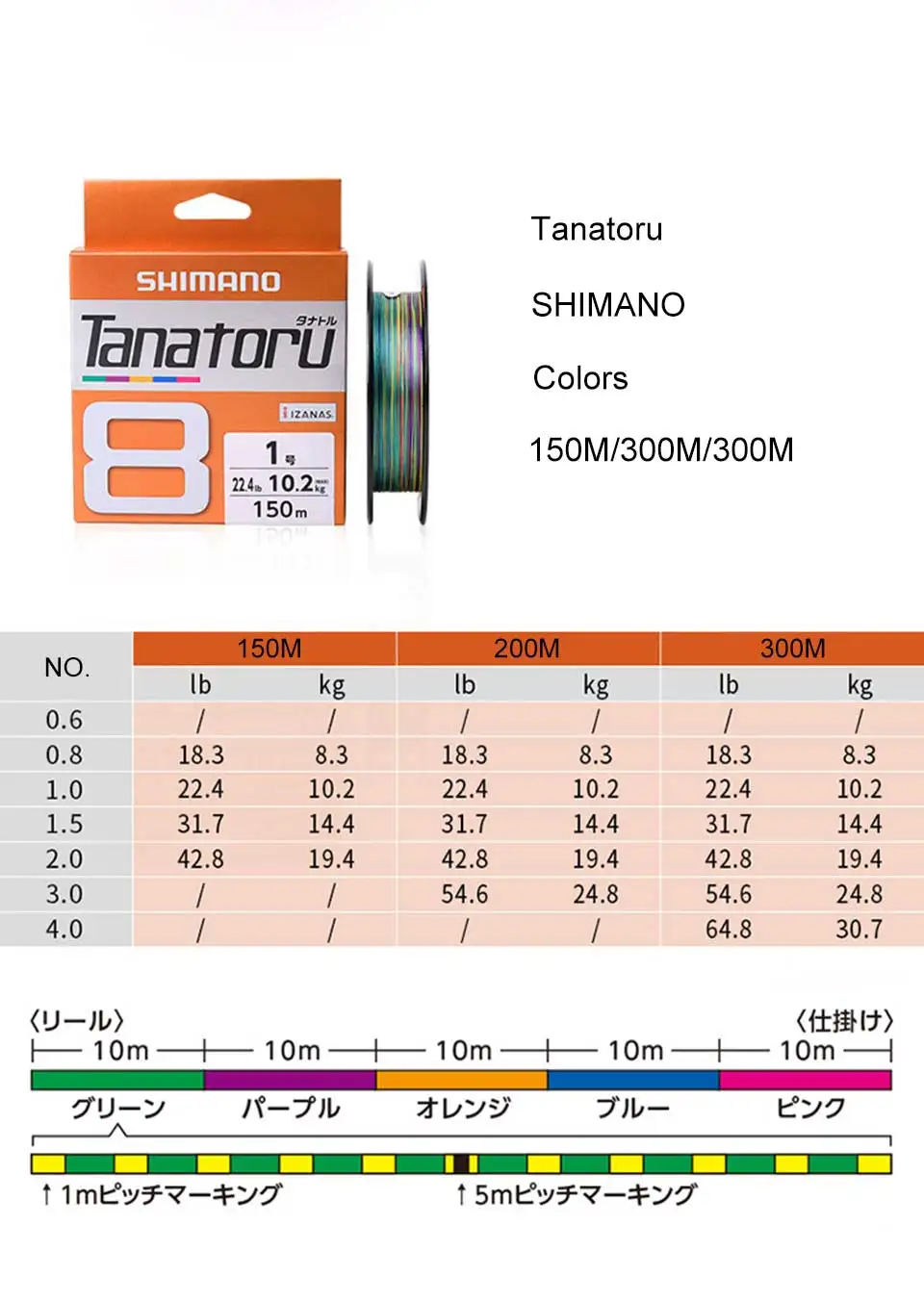 Tanatoru de sedal Original SHIMANO colores 8 hebras 100% PE 14.5LB-67.8LB hecho en Japón líneas de pesca trenzadas 150M/200M/300M