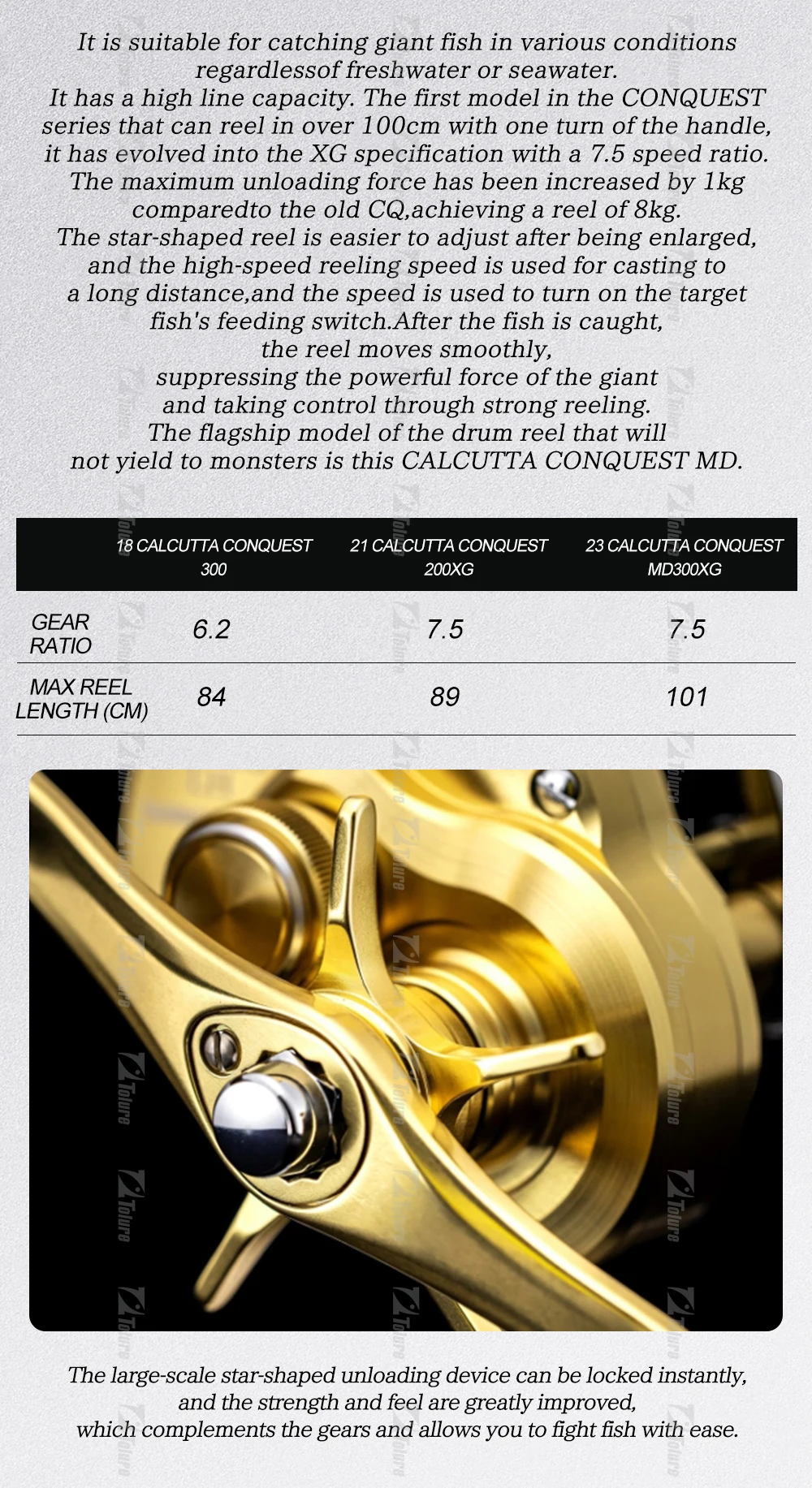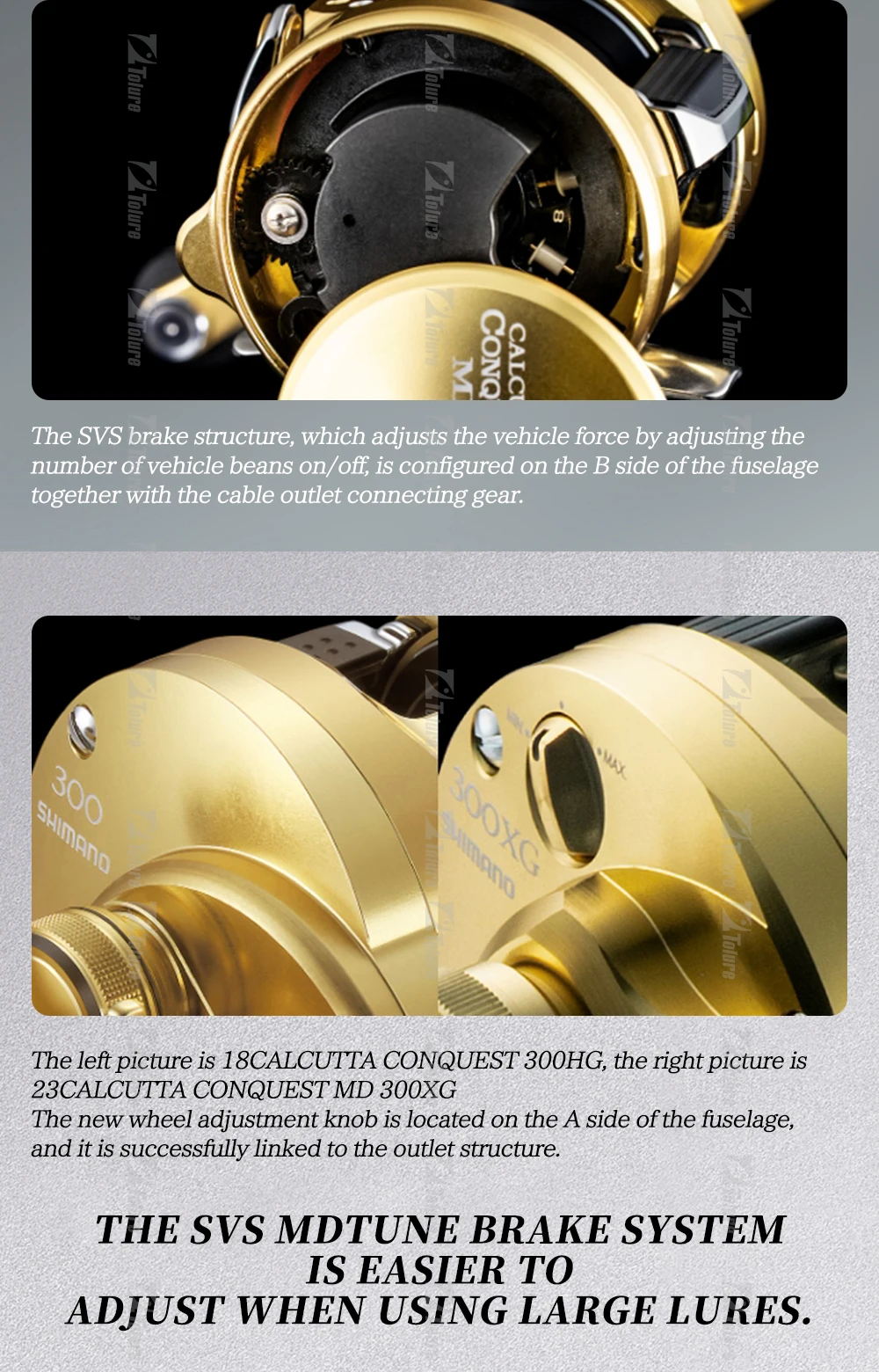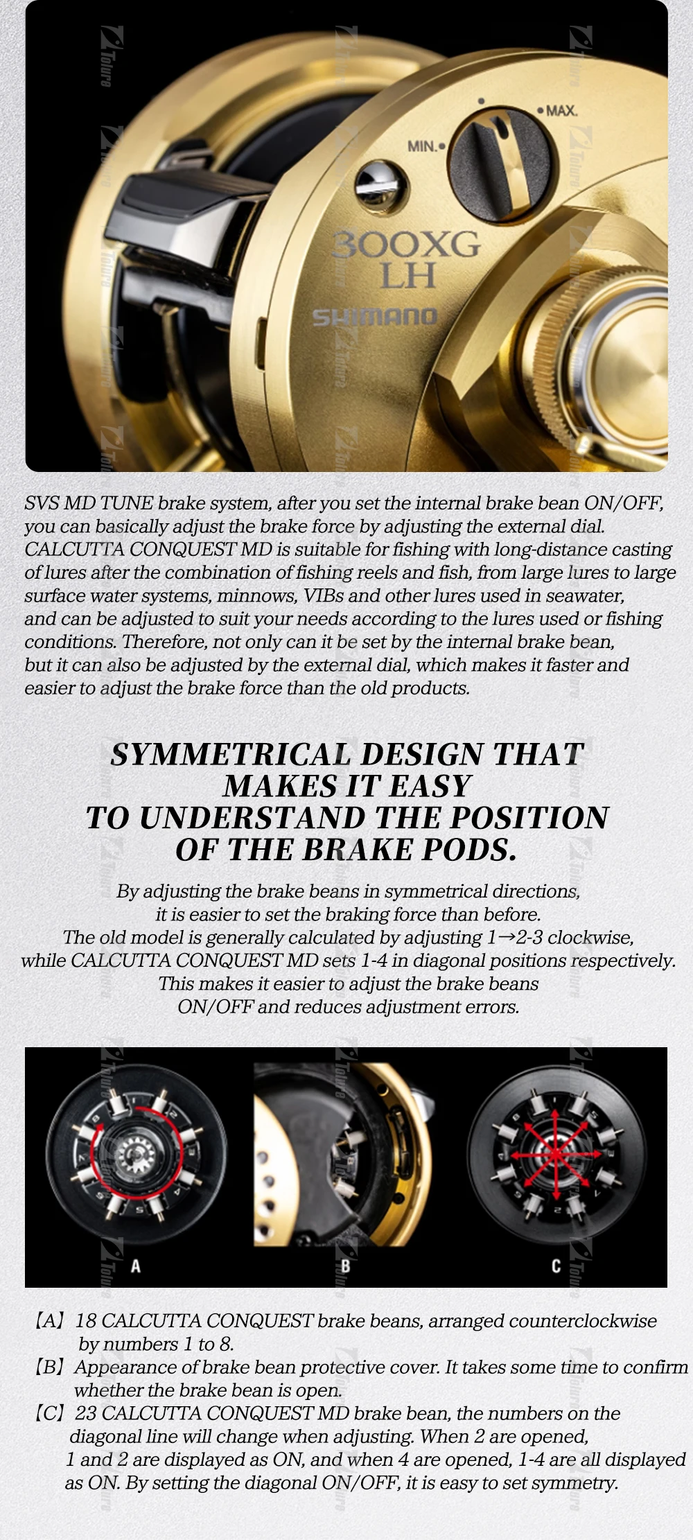Shimano Original 2022 Calcutta Conquest MD serie Baitcasting tambor carrete de pesca relación de engranaje 7,5: 1 11/1BB Max Drag8kg SVS MD Tune