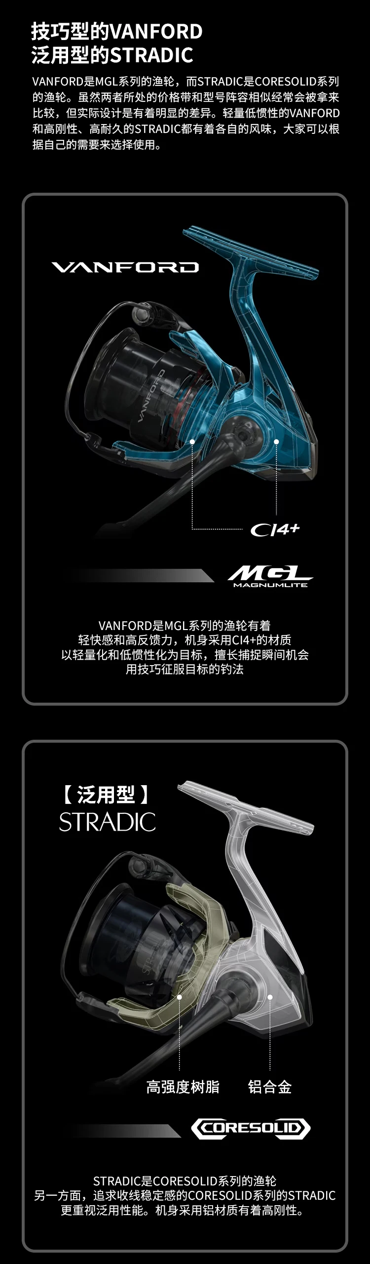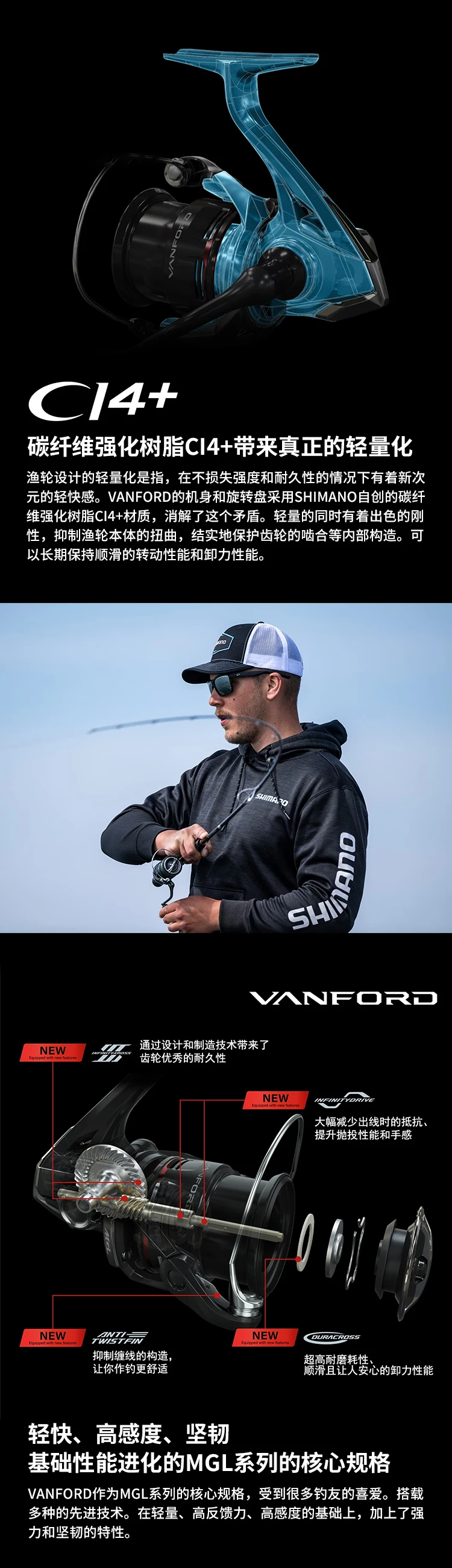 Shimano Original 2024 nuevo carrete de pesca giratorio VANFORD carrete de Metal CI4 + cuerpo ligero copa de alambre de Metal 3-11KG potencia agua salada
