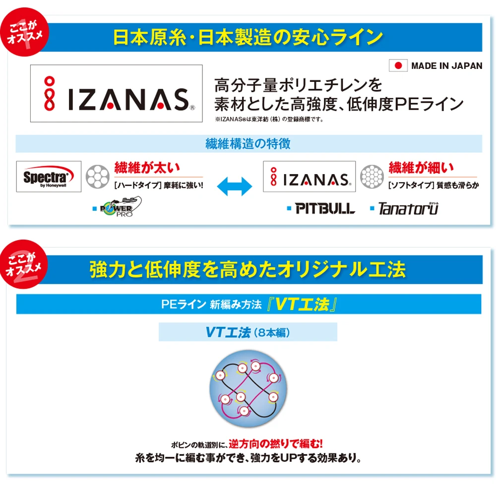 Reintroduciendo Pitbull 8 de Shimano, ahora adopta la nueva tecnología de trenzado "método de construcción VT". Con 8 portadores e incorporando una fabricación japonesa de primera calidad, la nueva construcción VT de tejido apretado se crea mediante la aplicación de alta tensión en direcciones opuestas durante el proceso de trenzado. En el método de construcción VT, la fibra se teje uniformemente en todos los ángulos, lo que resulta en un acabado más suave, diámetro reducido y una fundición larga. Además, el acabado suave crea menos fricción a través de las guías, minimizando el ruido del molde y ayuda a un enfoque discreto. El tejido apretado logra una mayor sensibilidad, lo que resulta en un bajo estiramiento. Estos atributos hacen del Pitbull 8 una excelente opción para la pesca fina, el lanzamiento de señuelos y nudos de atado donde se requiere suavidad, sensibilidad y casabilidad para dar ese borde adicional contra su próximo encuentro.