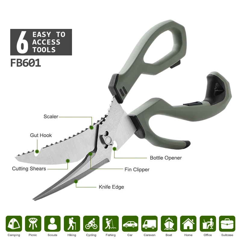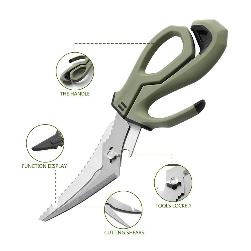 SHIQIAN-tijeras de corte de pesca Premium, cocina resistente con cuchillas desmontables, tijeras multifunción de acero inoxidable para aves de corral