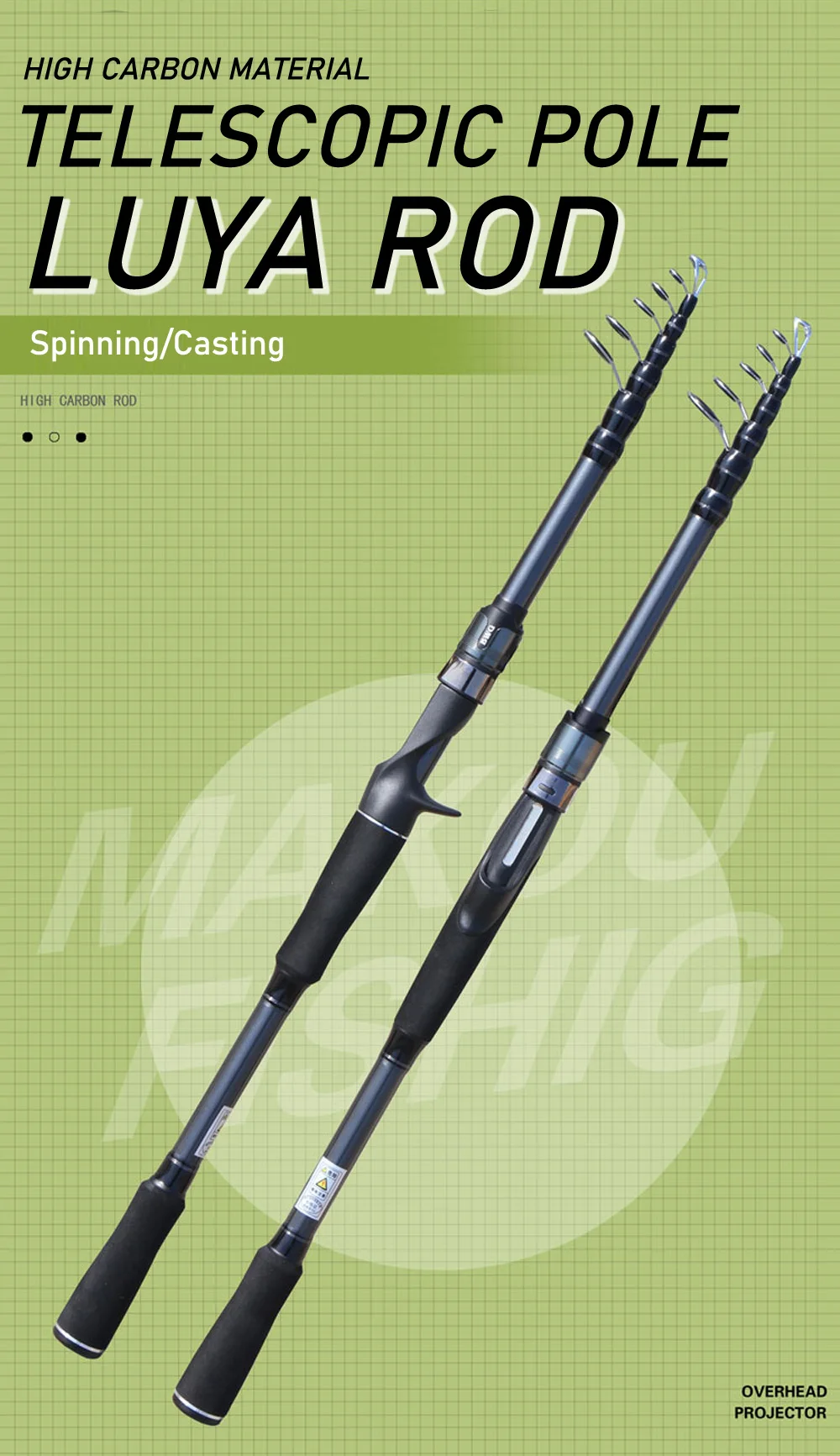 1 Material de fibra de carbono, potente, sensible, pero ligero.
