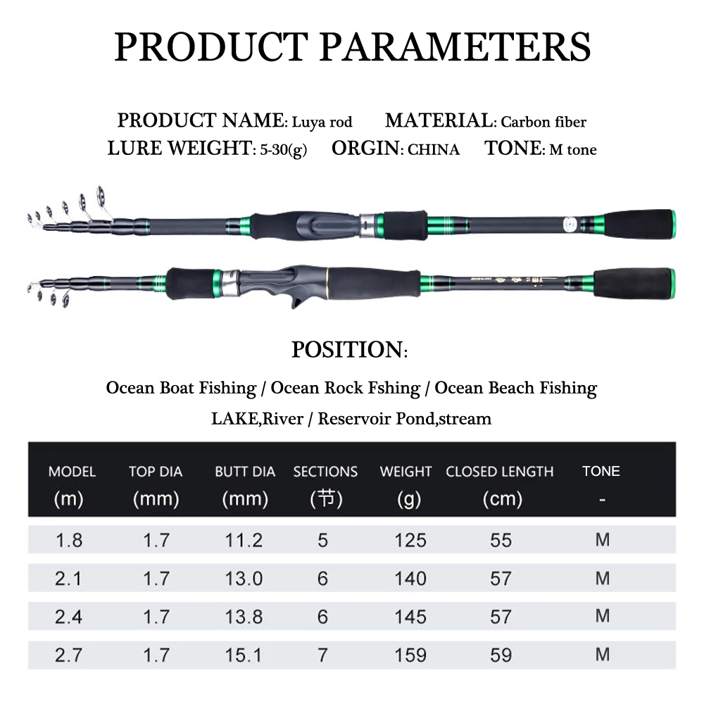 Canna giratoria de fibra de carbono SIECHI, caña de pescar telescópica de 1,8 M -2,7 M, señuelo de fundición, caña alimentadora, caña de pescar de carpa súper dura