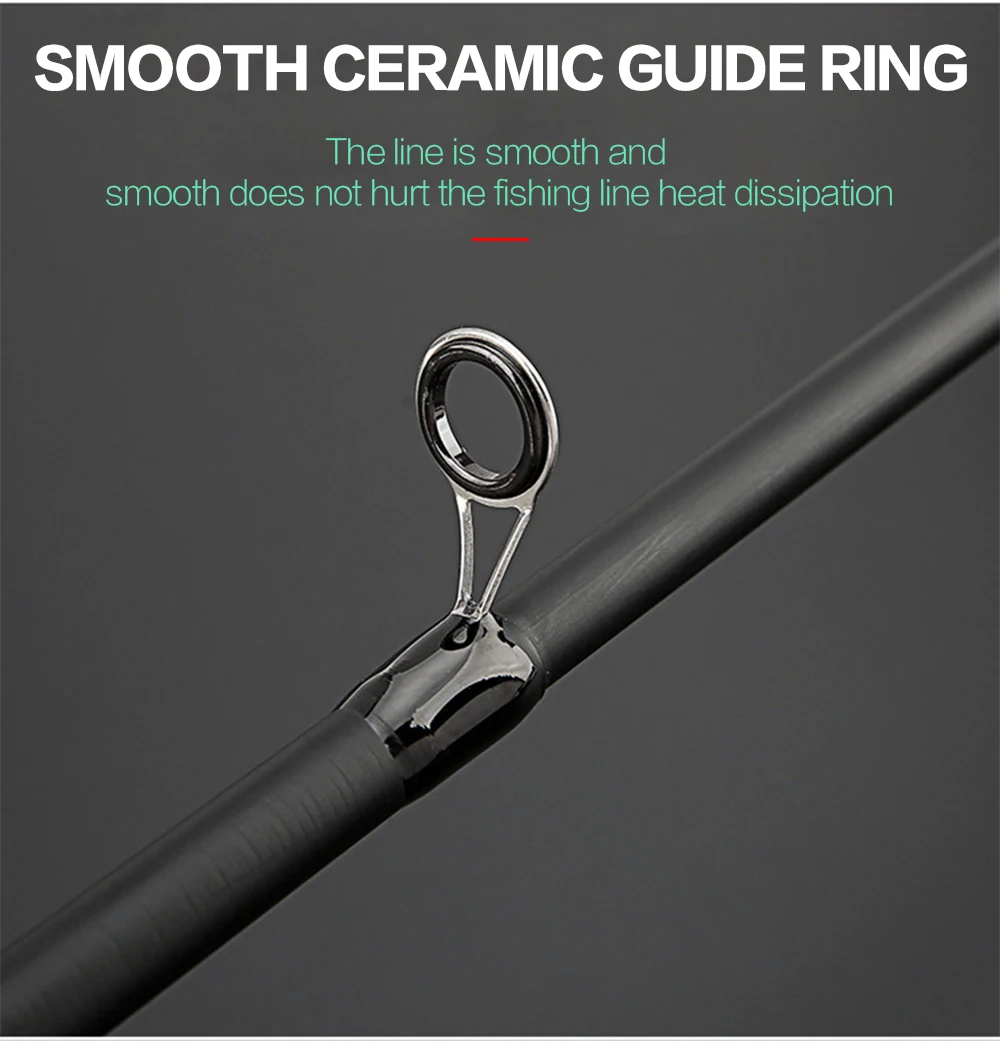 3 anillos guía de cerámica de alta calidad, minimizan la fricción de la línea, disipan el calor de manera eficiente, entregan moldes suaves al recuperar.
