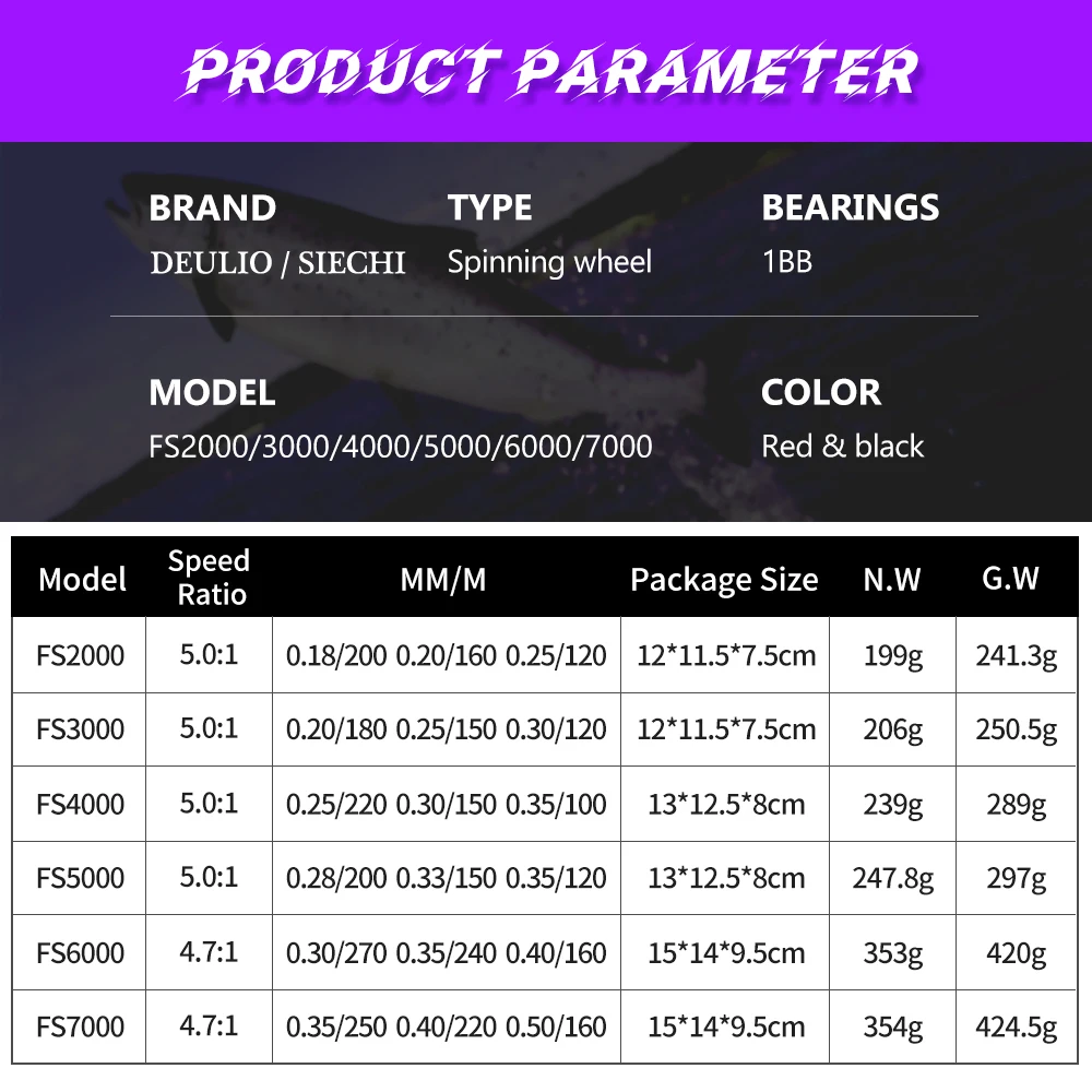 SIECHI FS 2000-7000 4,7: 1 5,0: 1 Relación de engranaje Carrete de pesca de alta velocidad Resistencia al agua 10KG Potencia de arrastre máxima Carrete giratorio Carrete de carpa