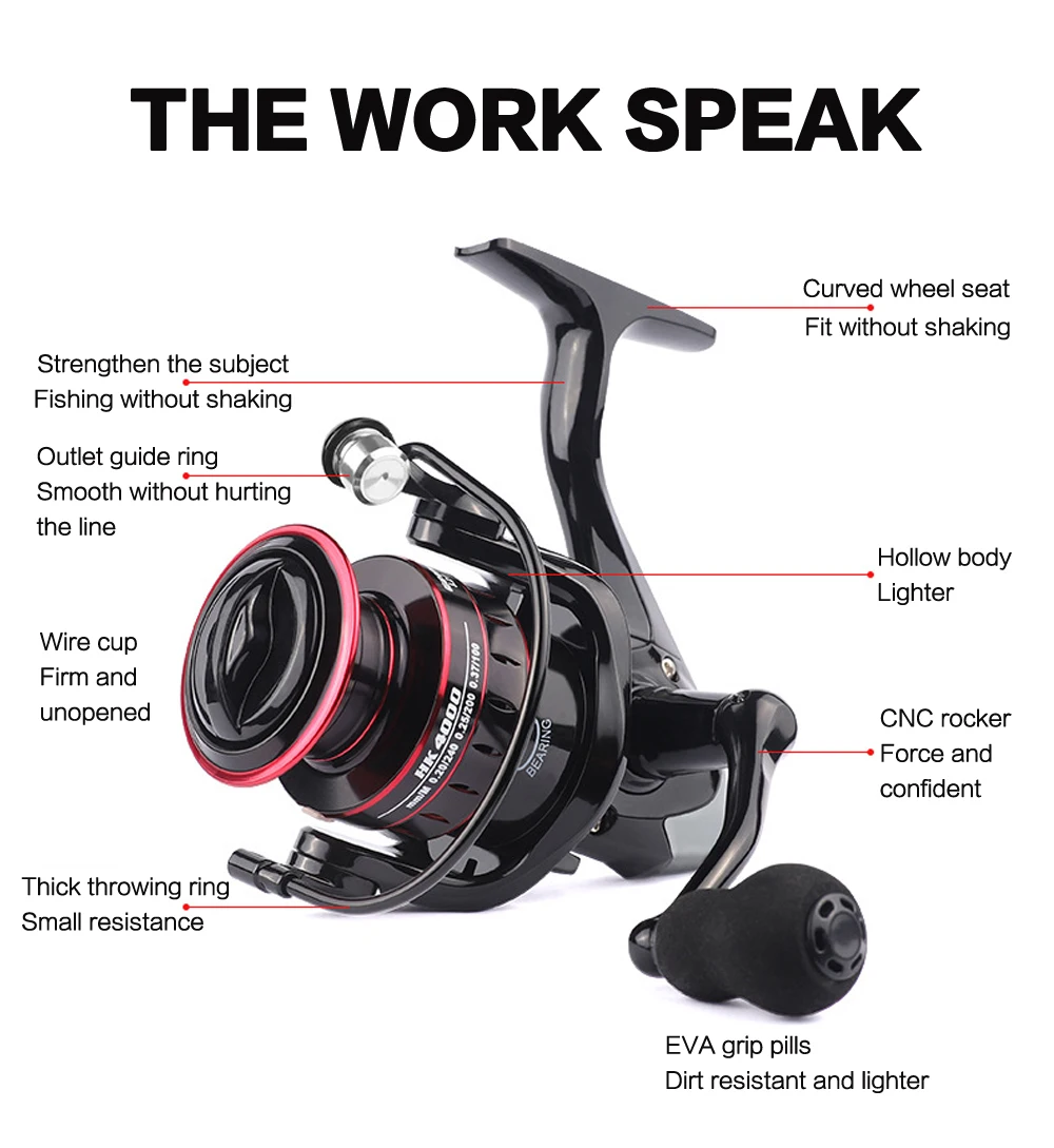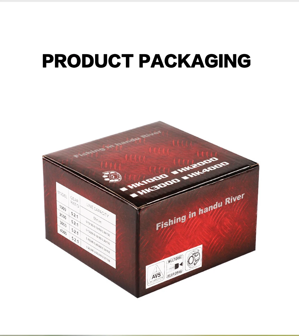 Características del producto + 8KG de fuerza de descarga: tirar de peces grandes de 100 libras no es ningún problema. + Cuerpo de alta resistencia, puede mejorar la rigidez, la resistencia a la torsión y la fuerza del carrete. + Carrete oblicuo de metal, salida rápida, fácil de lanzar. + 8KG de arrastre máximo fuerte, la fuerza de frenado es uniforme y no se atasca, desafía fácilmente a los peces grandes. + Mango de metal CNC, tecnología de moldeo integrada, fuerte y duradero. + Agarre de espuma EVA, amortiguador, antivibración, resistente a la humedad, fácil de atrapar peces grandes. + Engranaje impulsor de Metal, Reduce el espacio de engranajes, conduce fácilmente y sin obstáculos. Especificaciones: + Marca: LINNHUE + Arrastre máximo: 8kg + Peso neto: 214g/217g/229g/232g/307g/311g/316g + Relación de transmisión: 5,2: 1 + Capacidad de la línea (mm-m) HK1000: 0,15/180, 0,18/160, 0,24/100 + Capacidad de la línea (mm-m) HK2000: 0,15/200, 0,18/180, 0,28/100 + Capacidad de la línea (mm-m) HK3000: 0,18/240, 0,20/200, 0,34/100 + Capacidad de la línea (mm-m) HK4000: 0,20/240, 0,25/200, 0,37/100 + Capacidad de la línea (mm-m) HK5000: 0,30/200, 0,35/160, 0,40/100 + Capacidad de la línea (mm-m) HK6000: 0,35/200, 0,40/160, 0,50/100 + Capacidad de la línea (mm-m) HK7000: 0,40/240, 0,45/200, 0,55/100 Embalaje + Peso del paquete: 0,4 KG + El paquete incluye: 1 ud. Carrete a caja de cartón