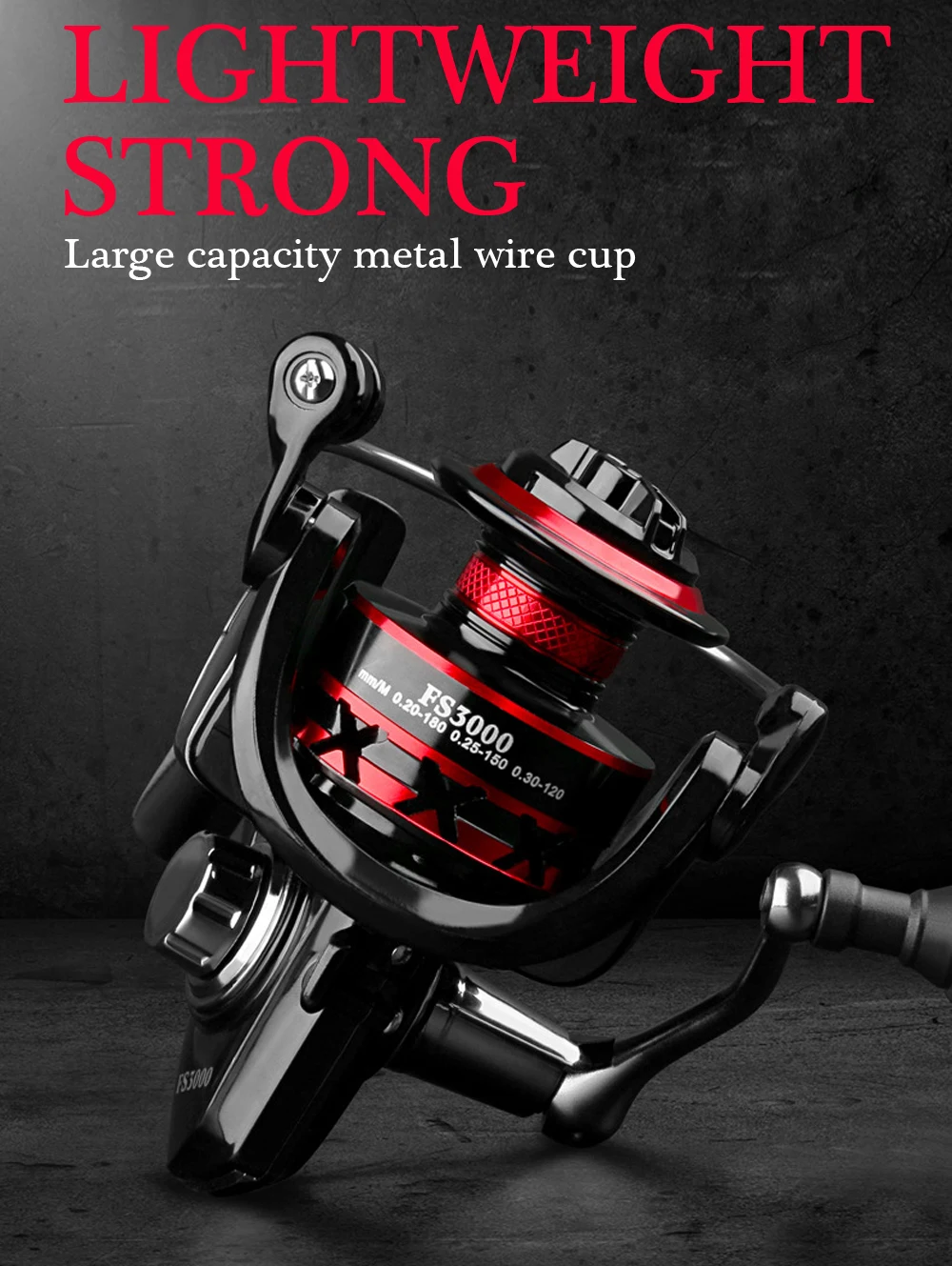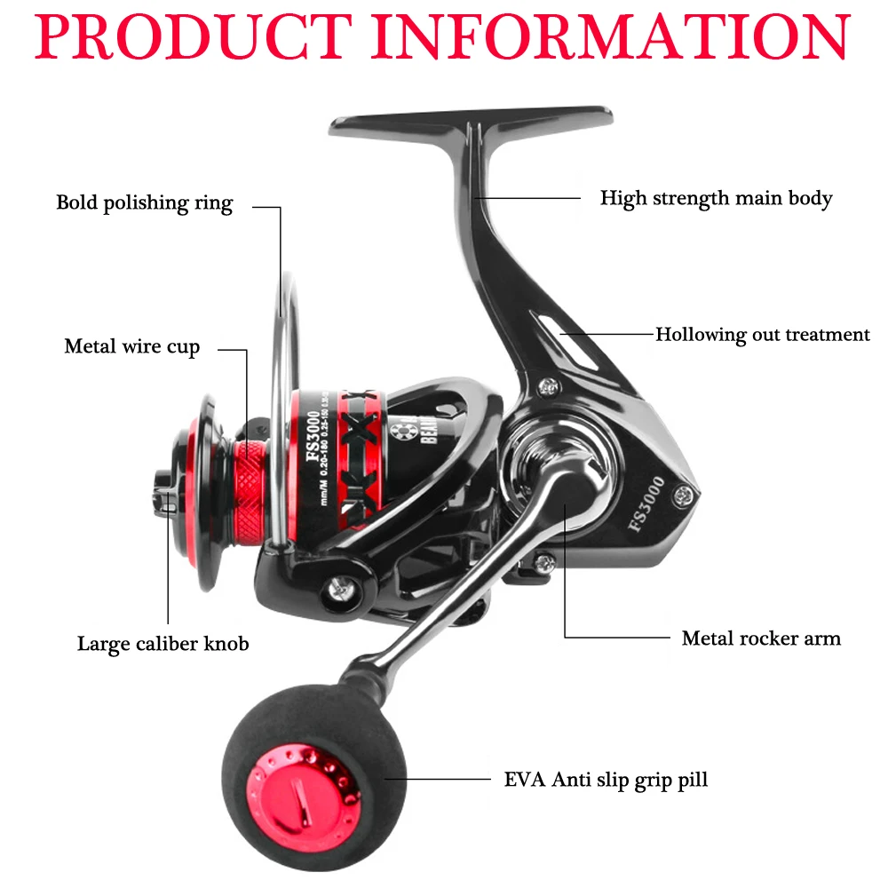 Características del producto: Copa de alambre de metal de alta precisión, gran capacidad, línea suave de diseño biselado; balancín de metal CNC, fuerte y sensible; rodamiento principal grueso interno, mejora la potencia, duradero; rueda de alambre muy suave, sin línea de daños, sin tarjeta de dinero; Anillo de fundición grueso, menos resistencia a lanzar más lejos; Agarre de bola antideslizante de EVA, agarre cómodo, evita el sudor y el deslizamiento; fortalece el cuerpo principal y lo estabiliza.