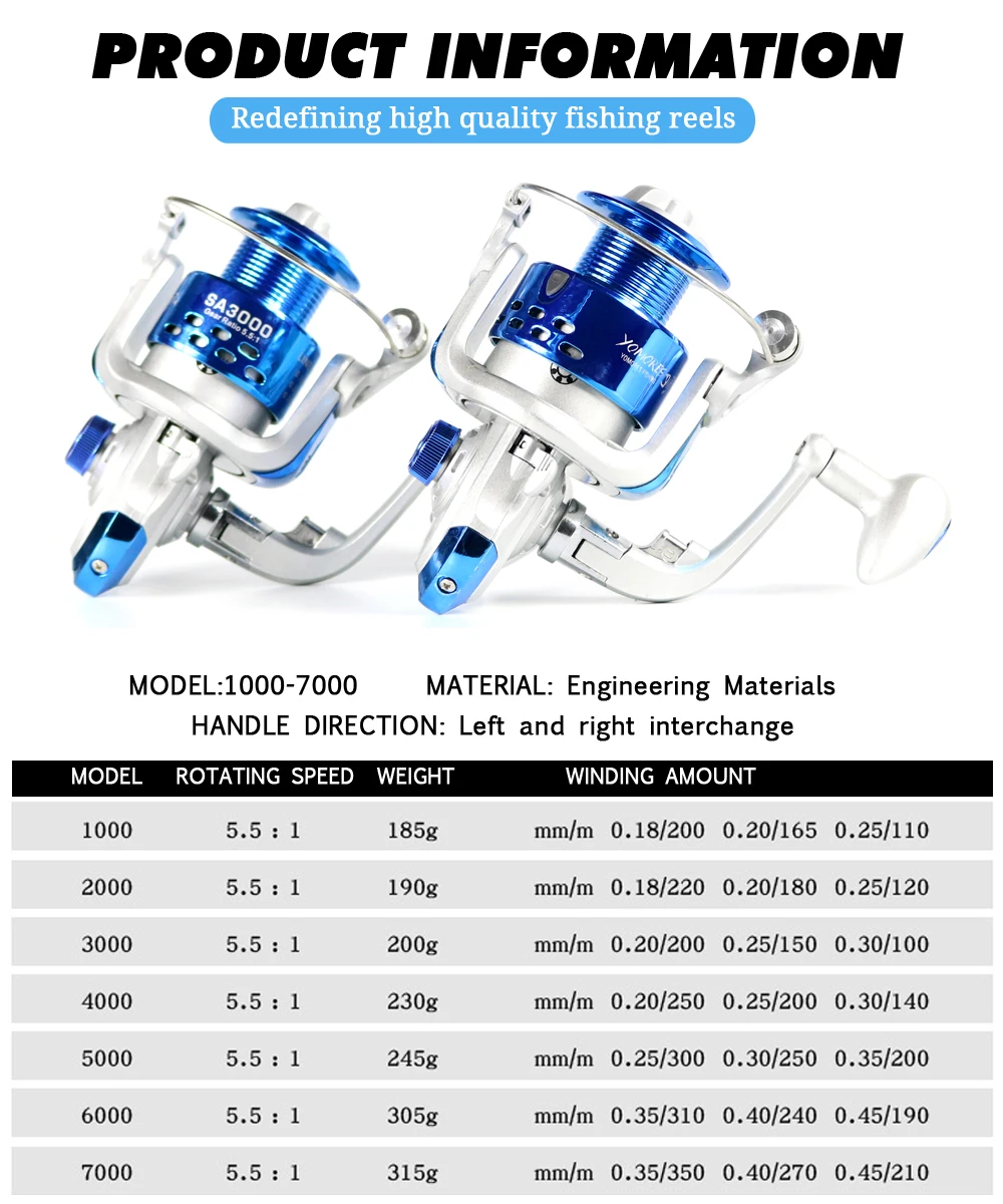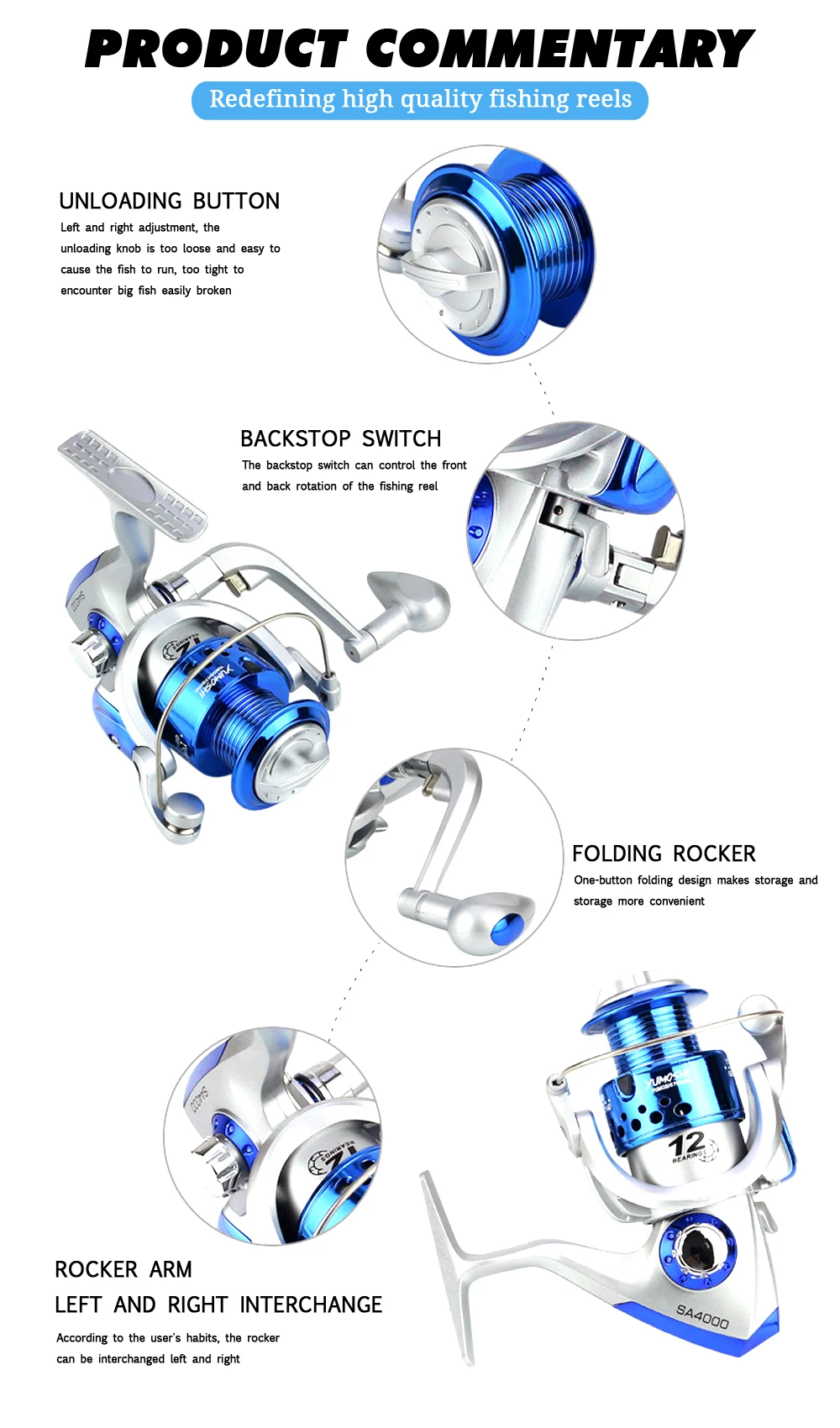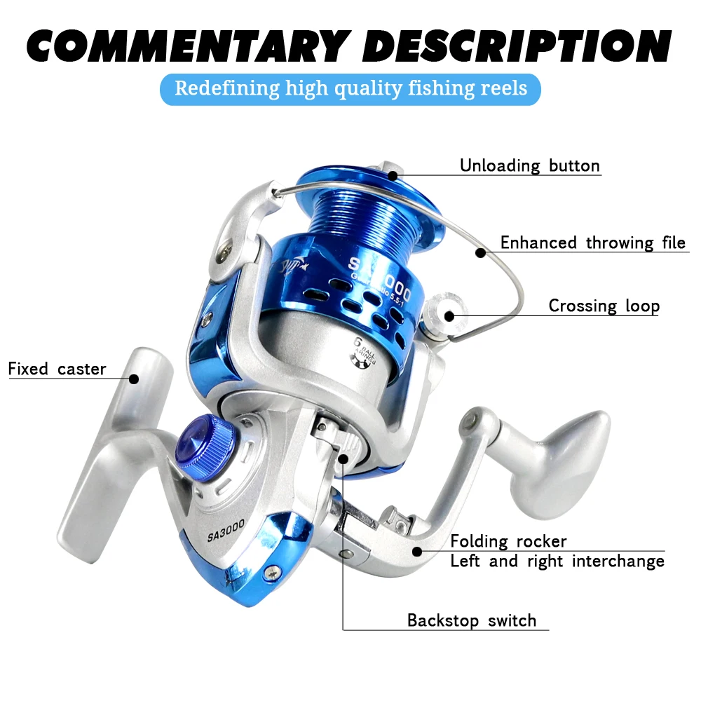 Carrete de pesca SIECHI marca SA serie 5,2: 1 1000-7000 carrete giratorio de 8KG de arrastre máximo para sistema de doble rodamiento de pesca